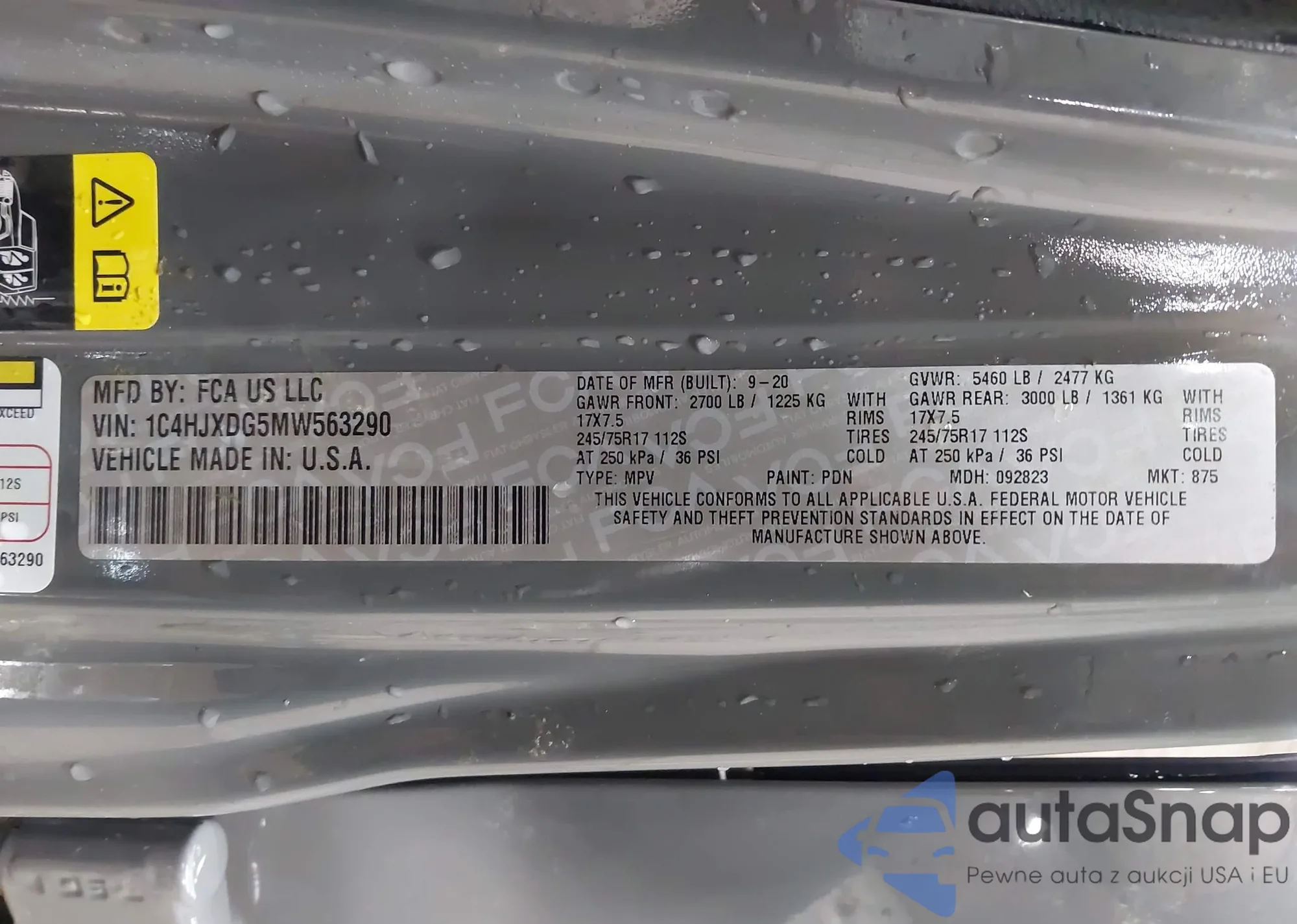 • VIN 1C4HJXDG5MW563290