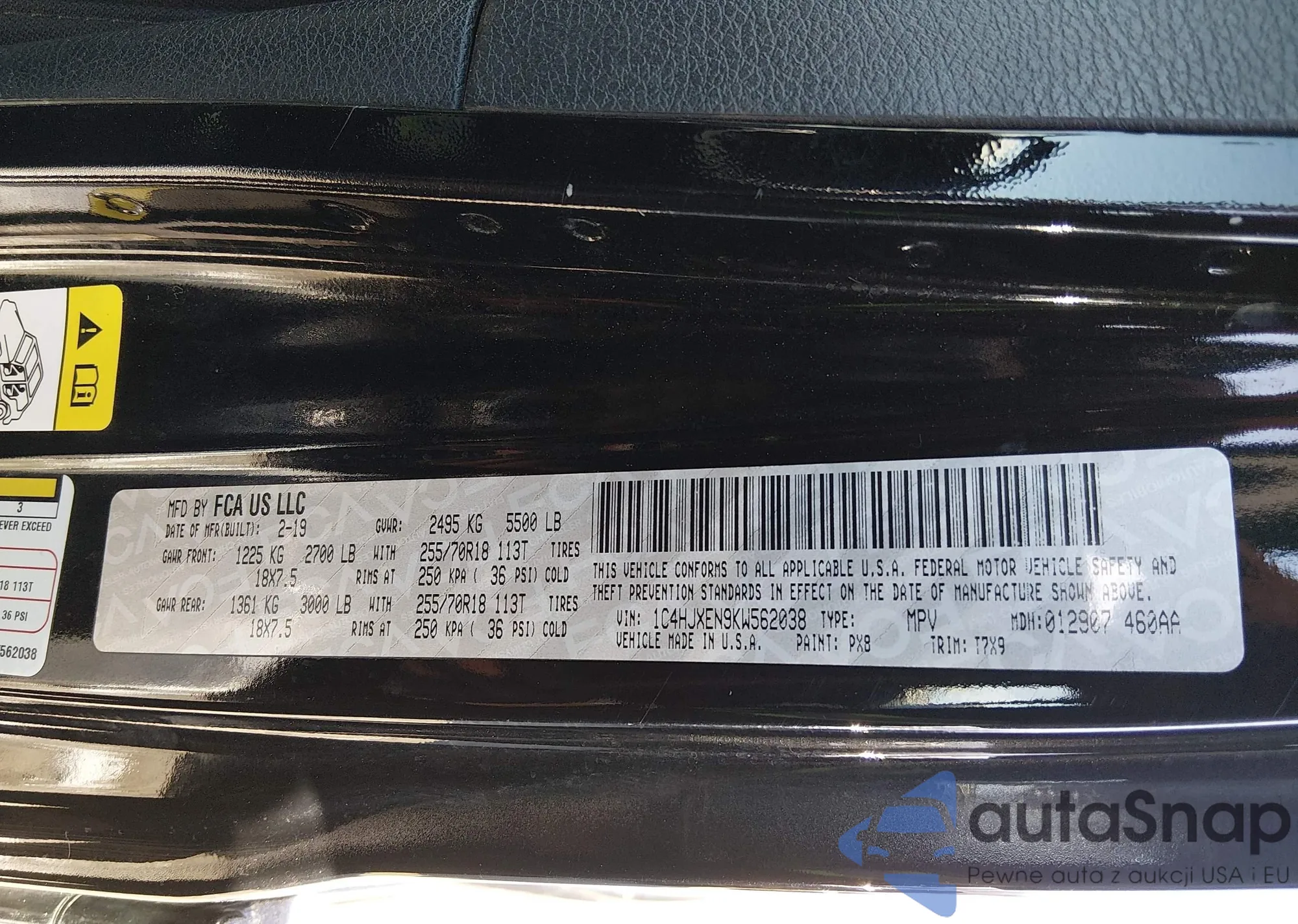 • VIN 1C4HJXEN9KW562038