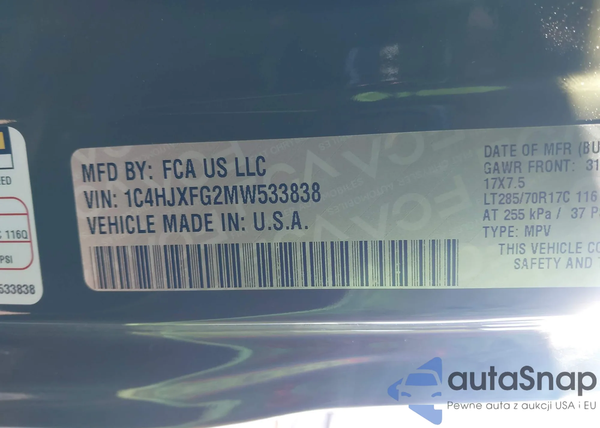 • VIN 1C4HJXFG2MW533838