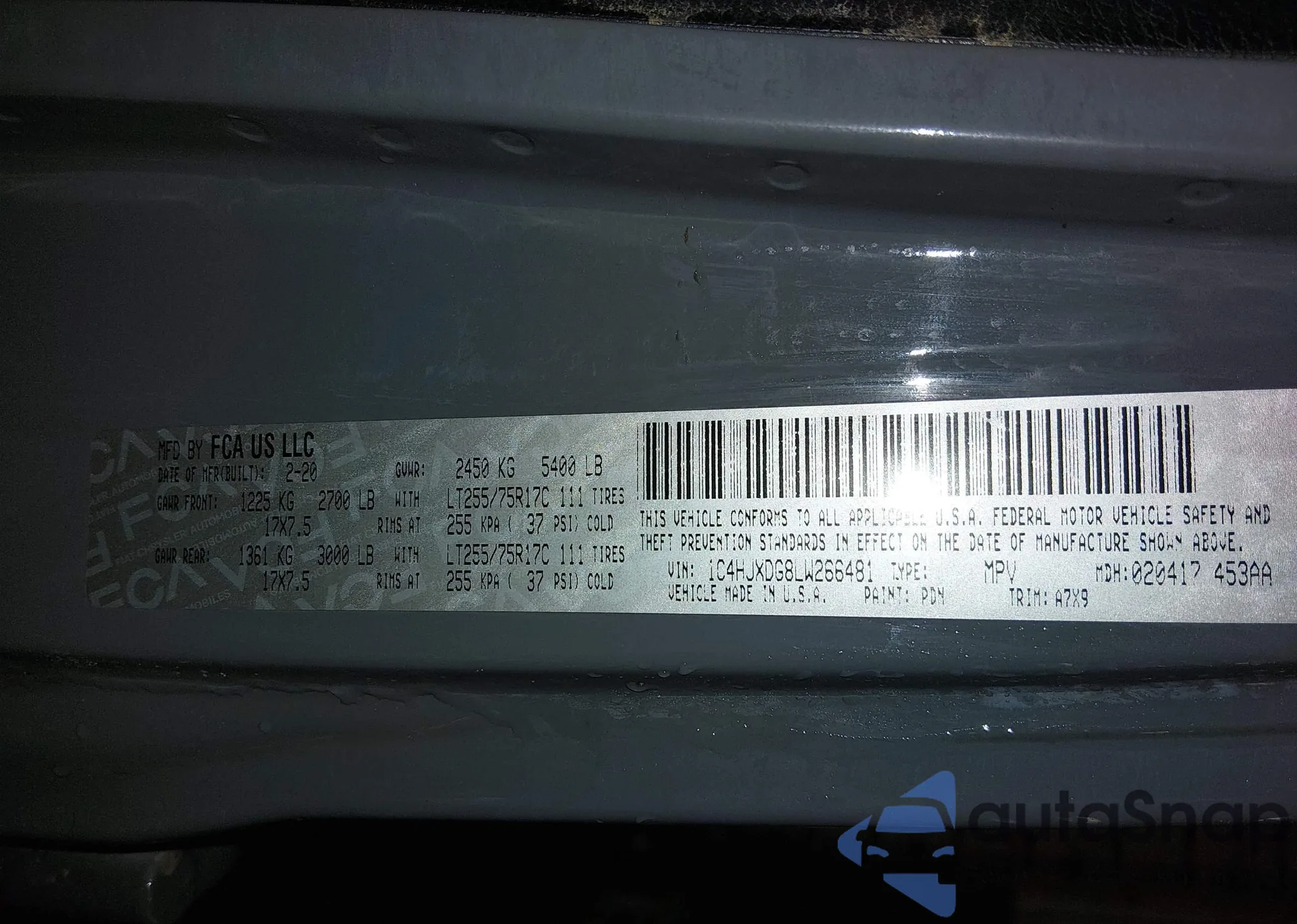 • VIN 1C4HJXDG8LW266481