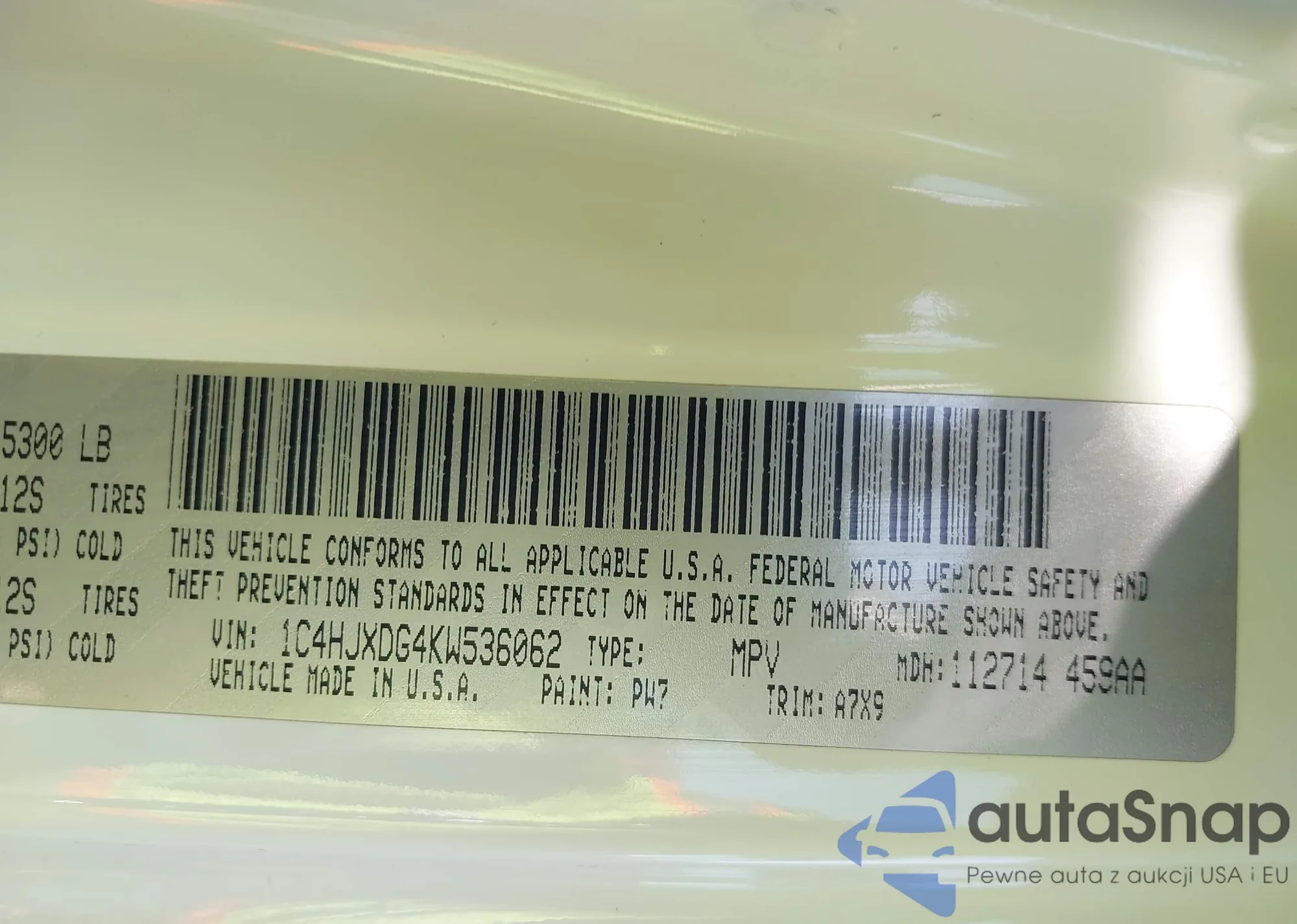 • VIN 1C4HJXDG4KW536062