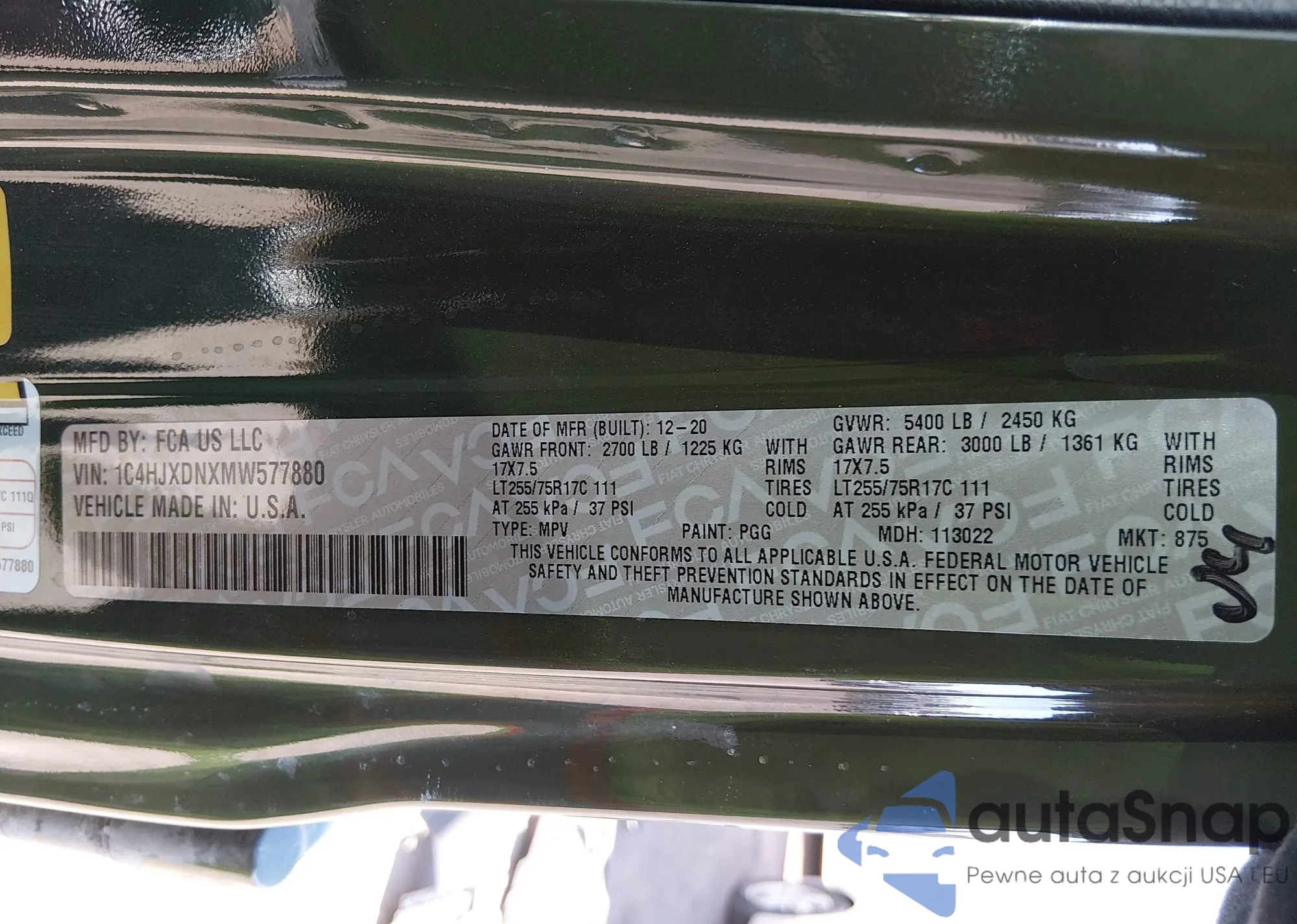 • VIN 1C4HJXDNXMW577880