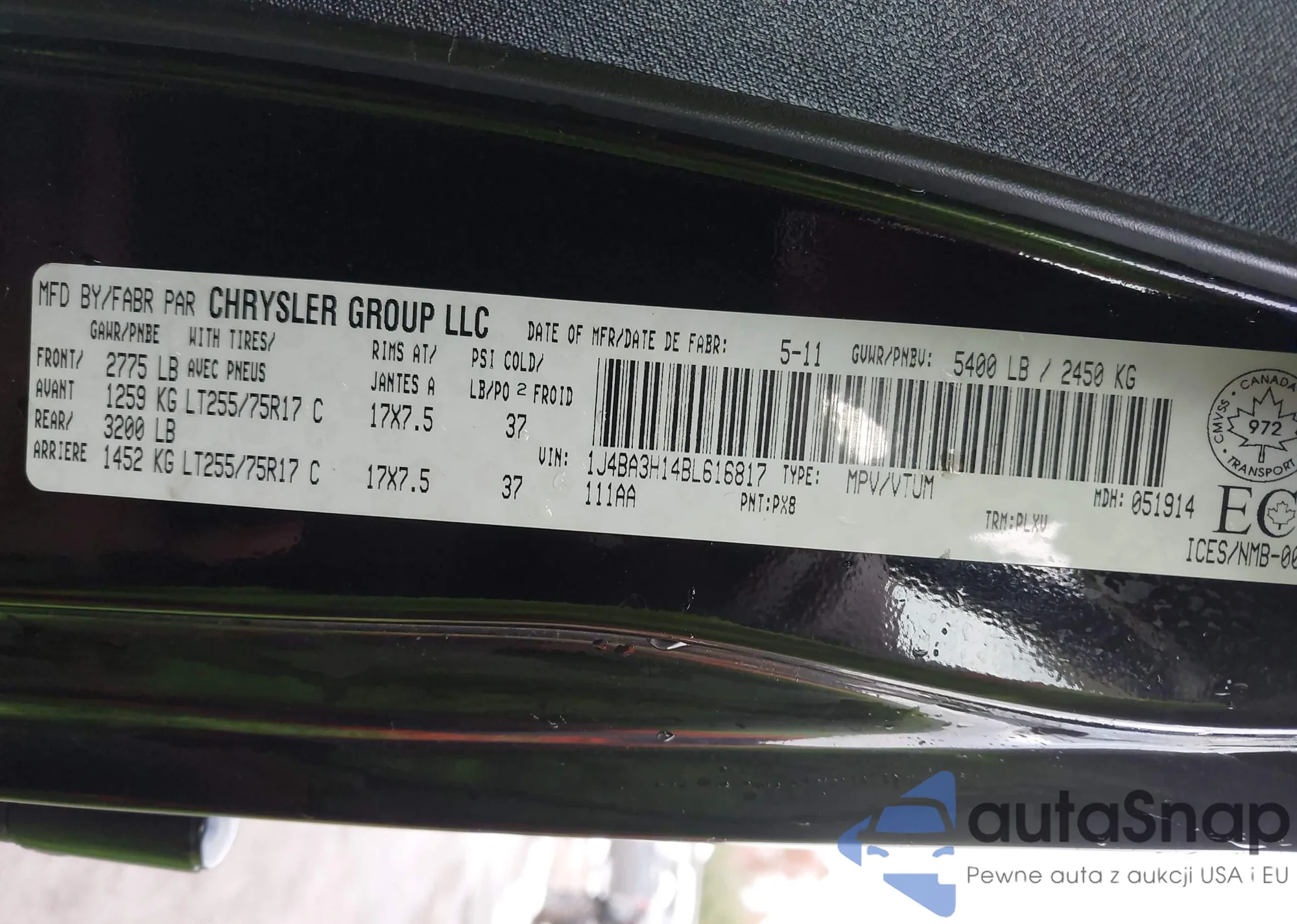 • VIN 1J4BA3H14BL616817