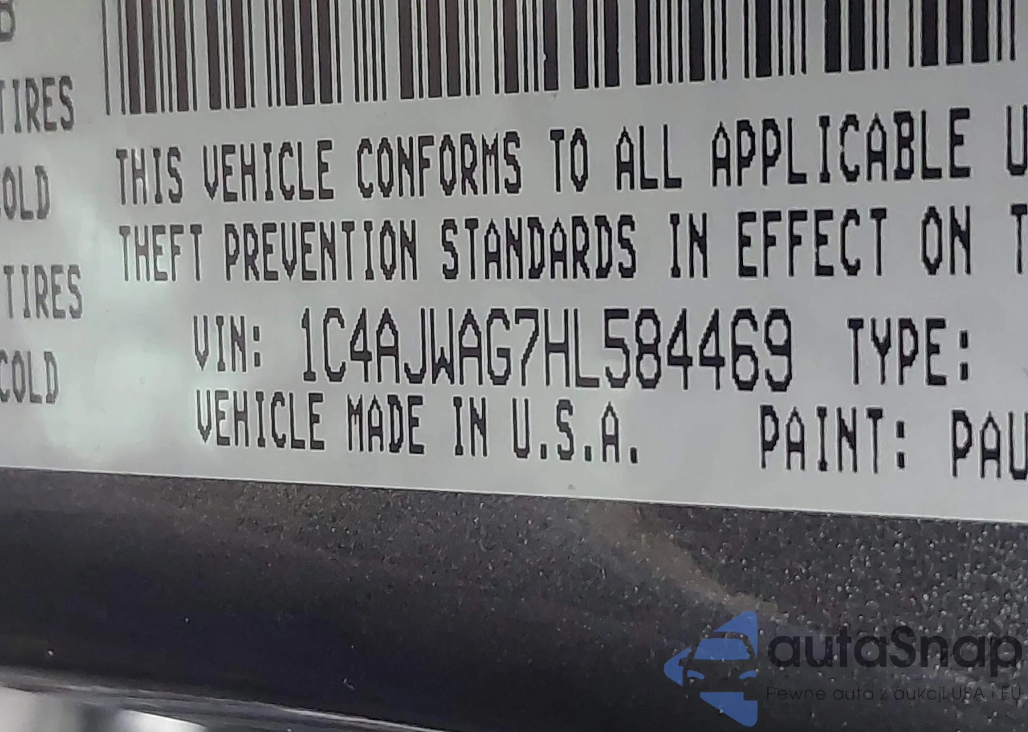 • VIN 1C4AJWAG7HL584469