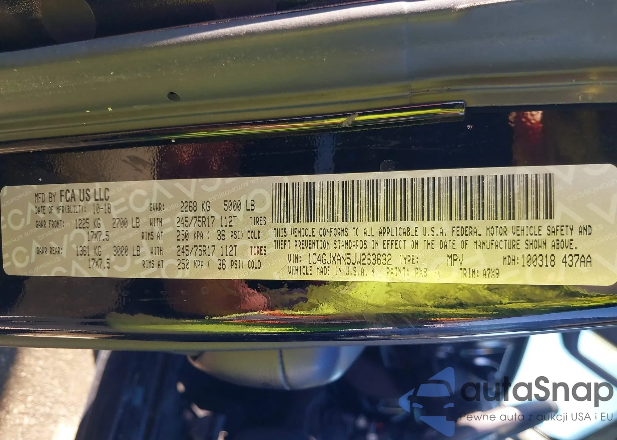 • VIN 1C4GJXAN5JW263632