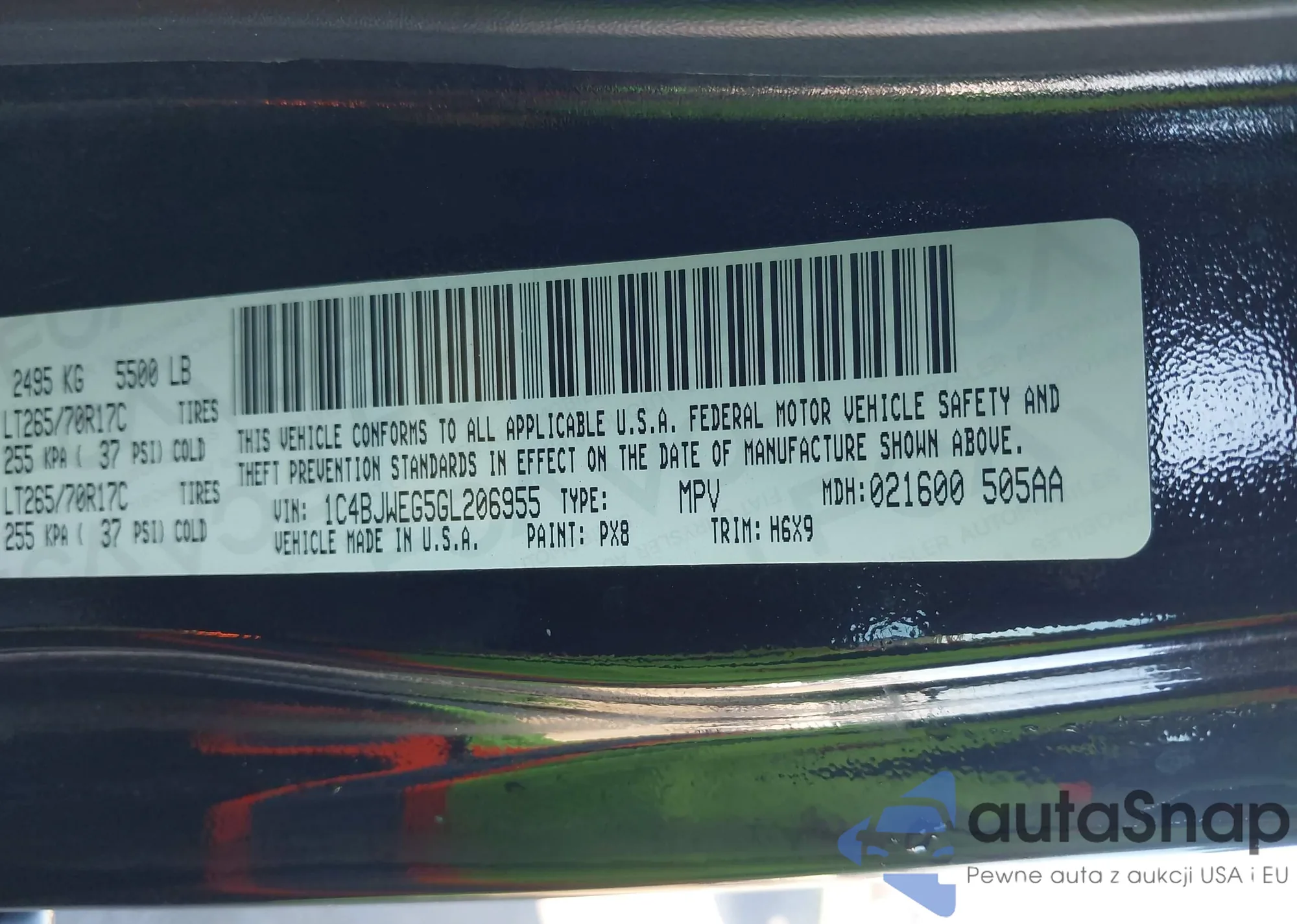 • VIN 1C4BJWEG5GL206955