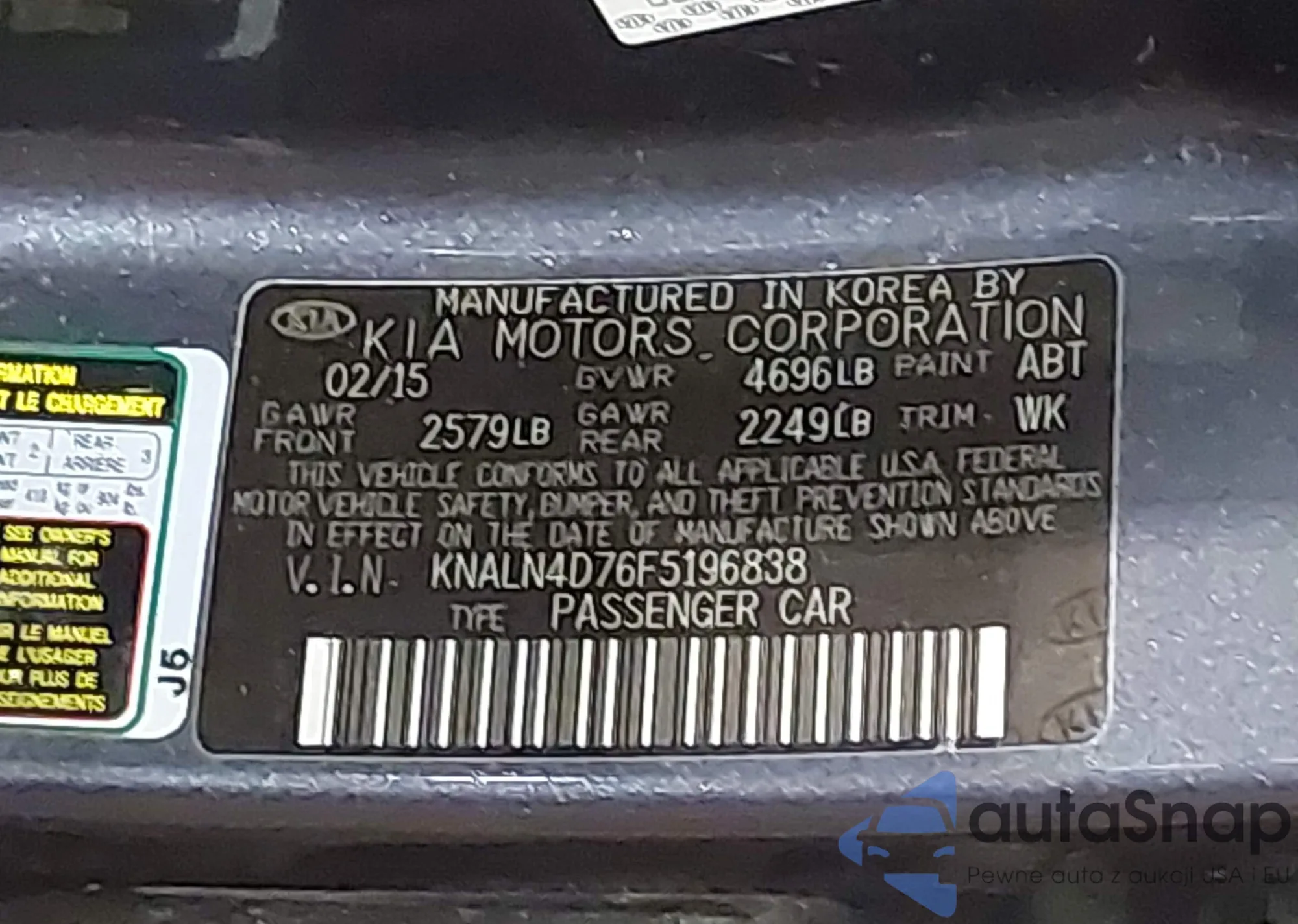 • VIN KNALN4D76F5196838