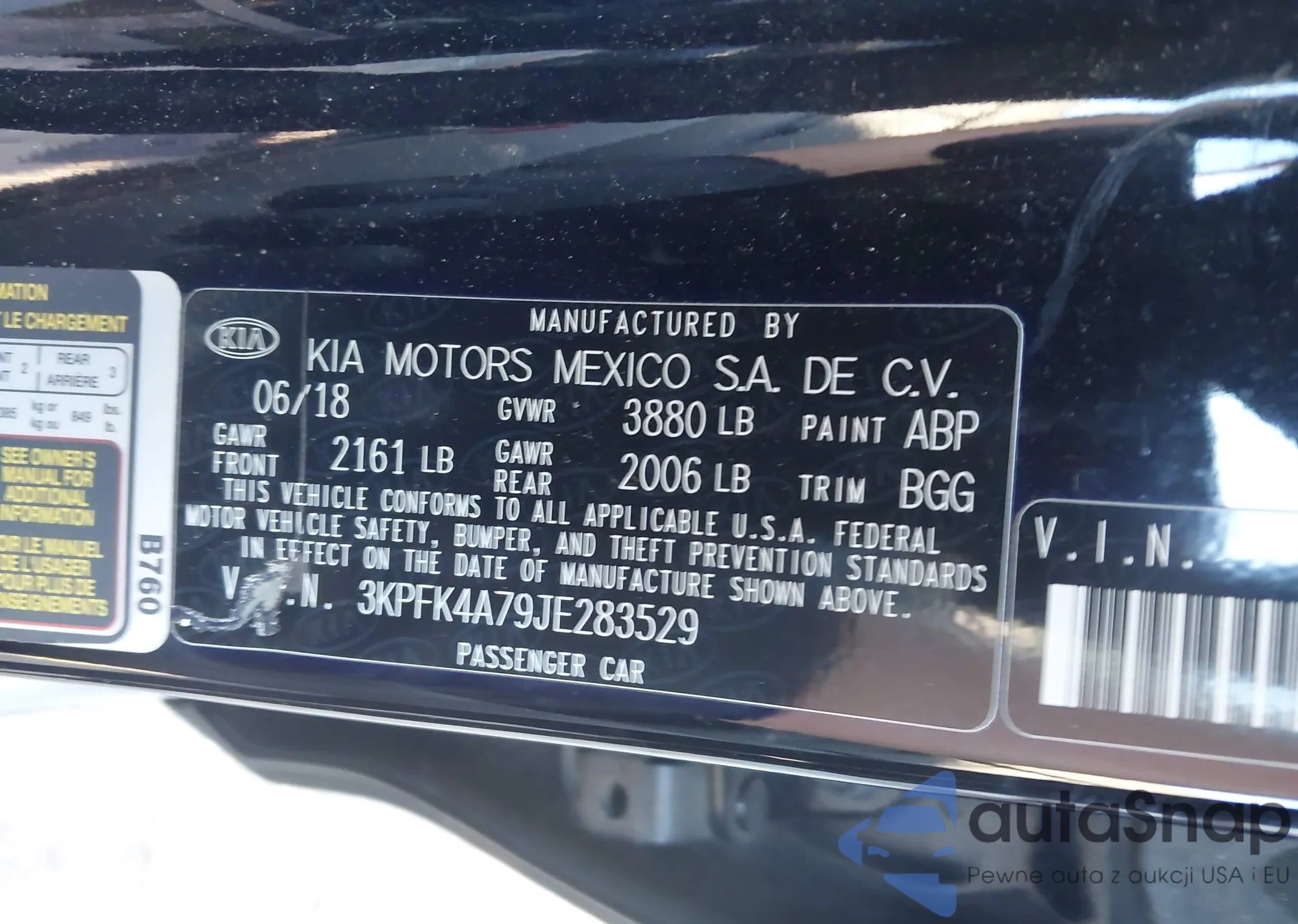 • VIN 3KPFK4A79JE283529