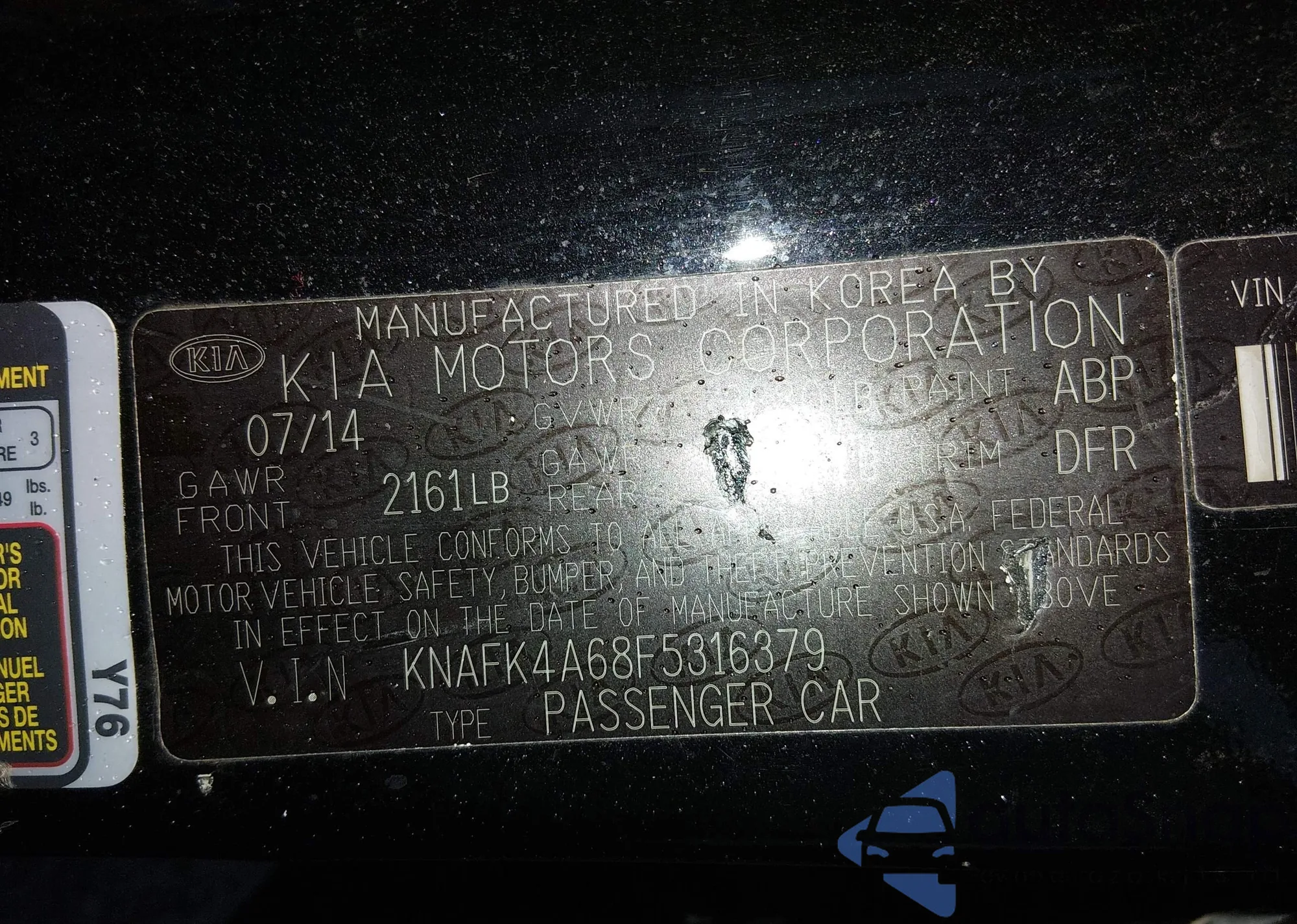 • VIN KNAFK4A68F5316379