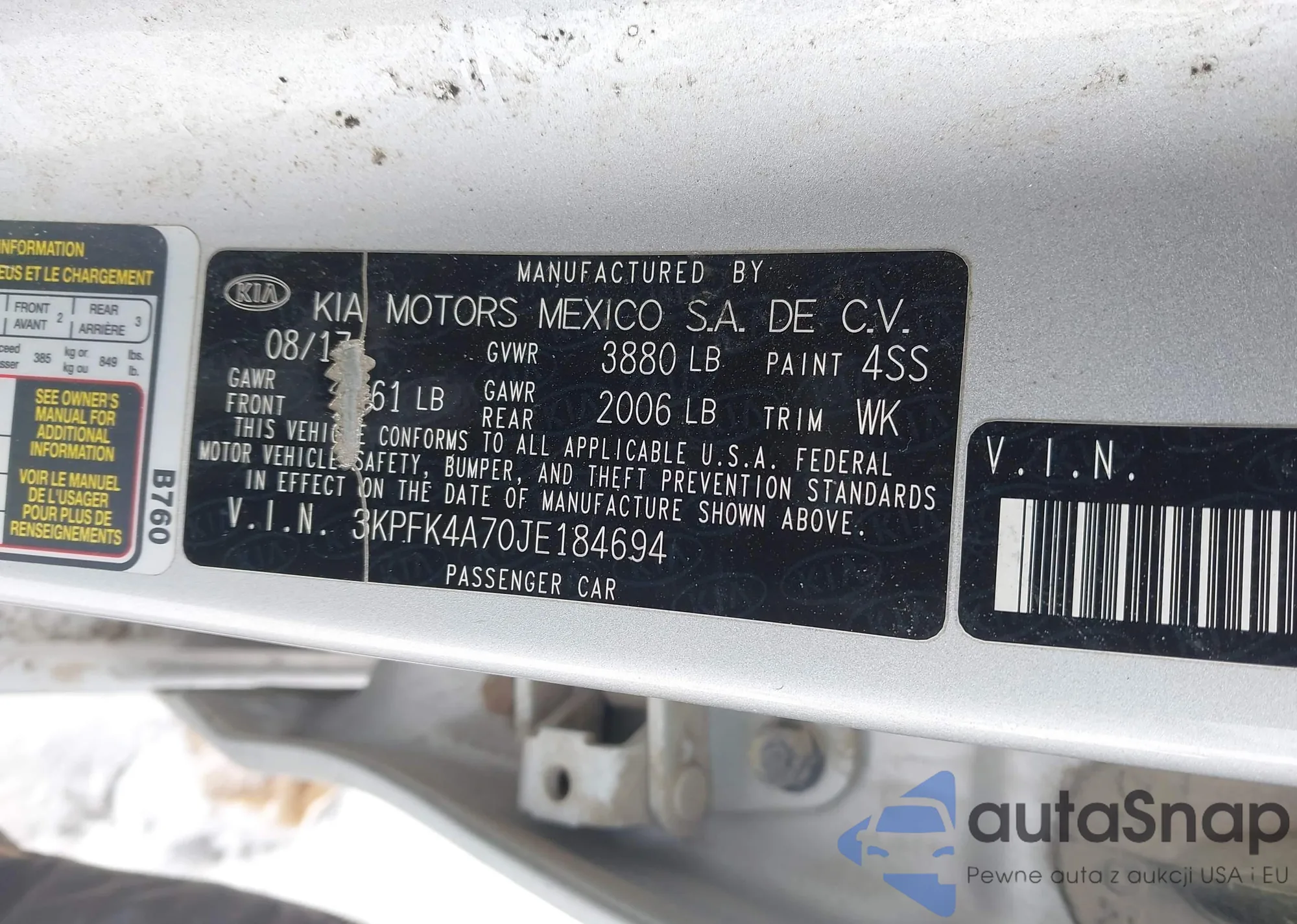• VIN 3KPFK4A70JE184694