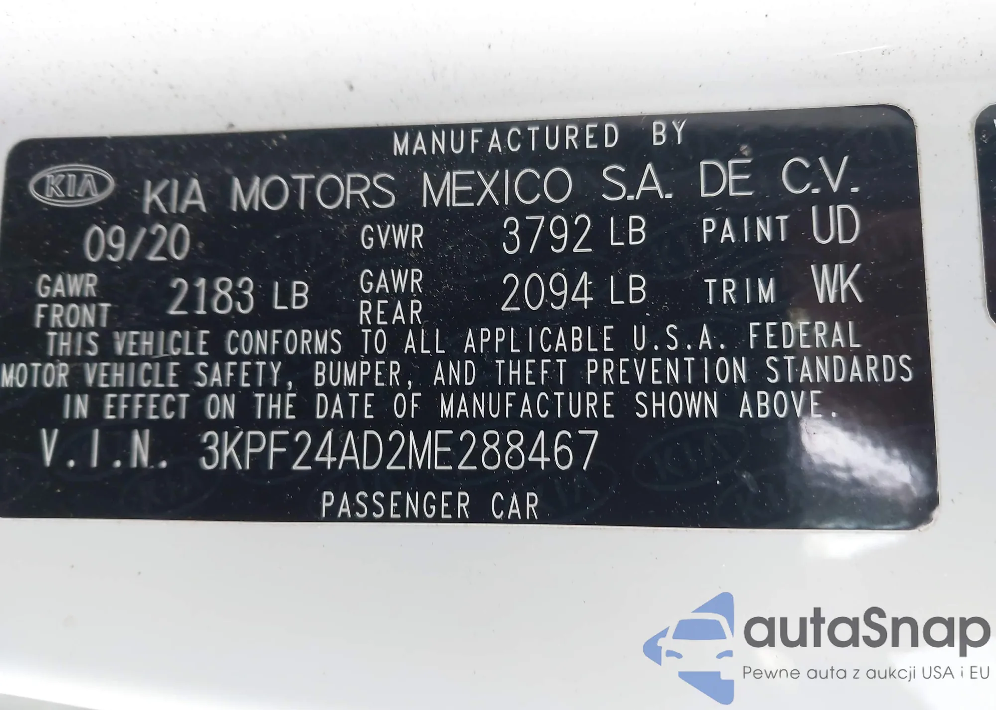 • VIN 3KPF24AD2ME288467