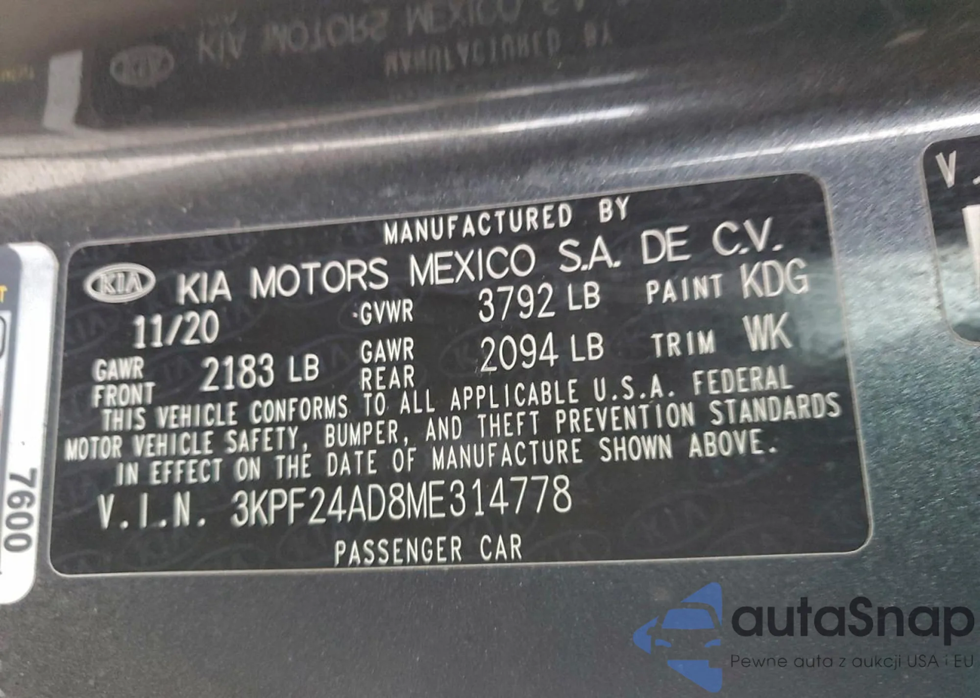 • VIN 3KPF24AD8ME314778