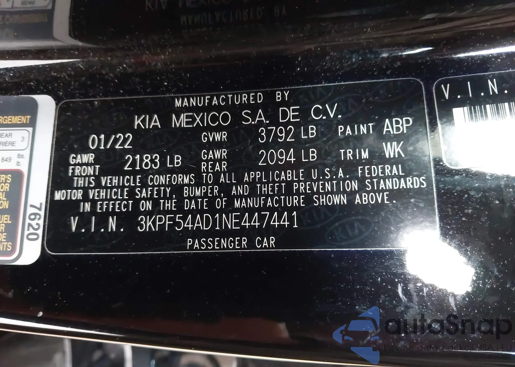 • VIN 3KPF44AC5NE473874