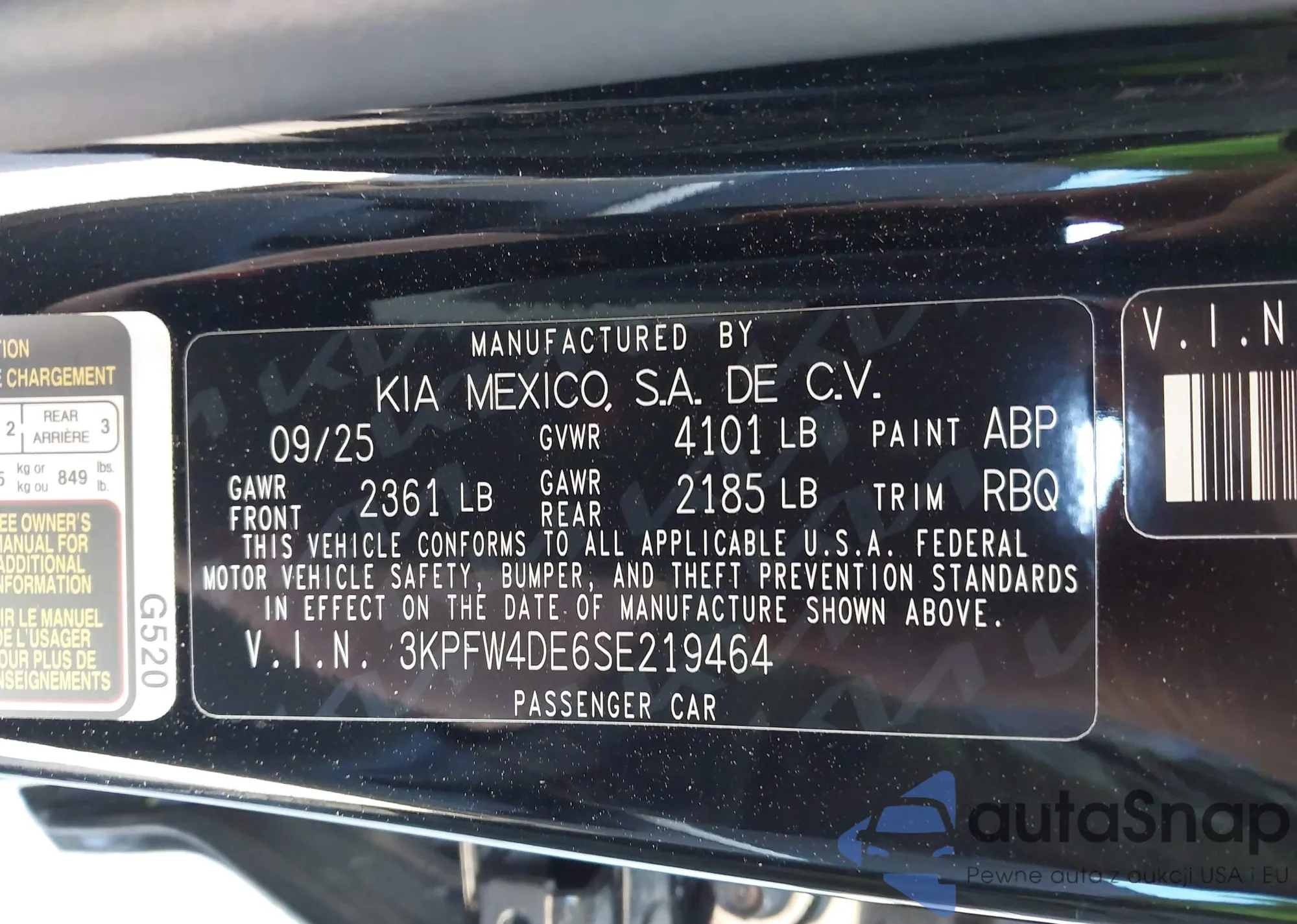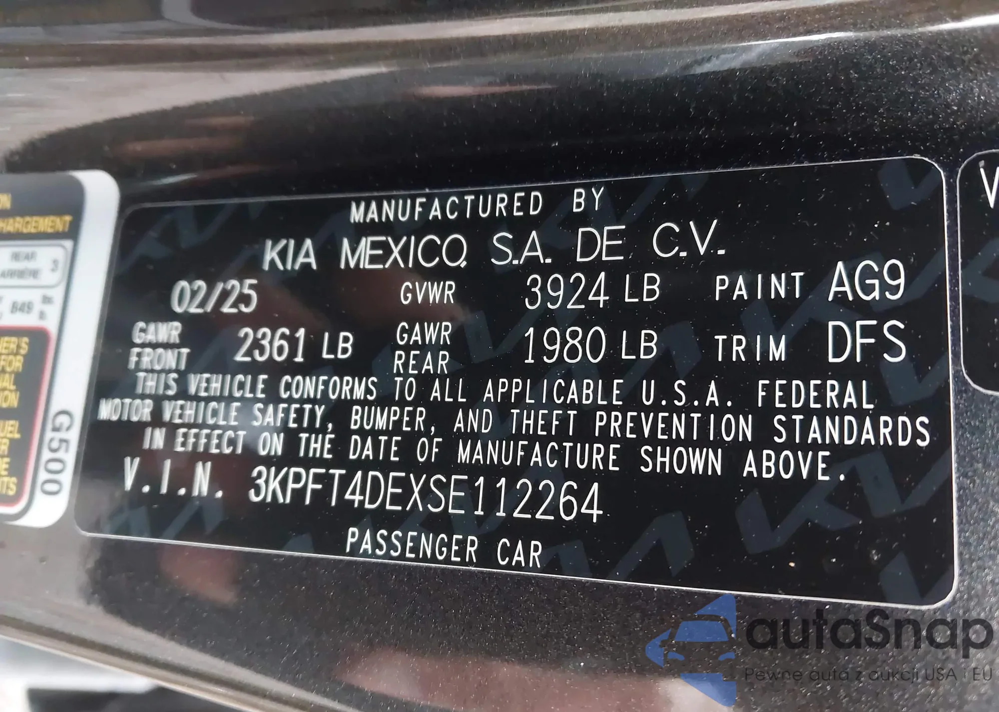 • VIN 3KPFT4DE9SE214302