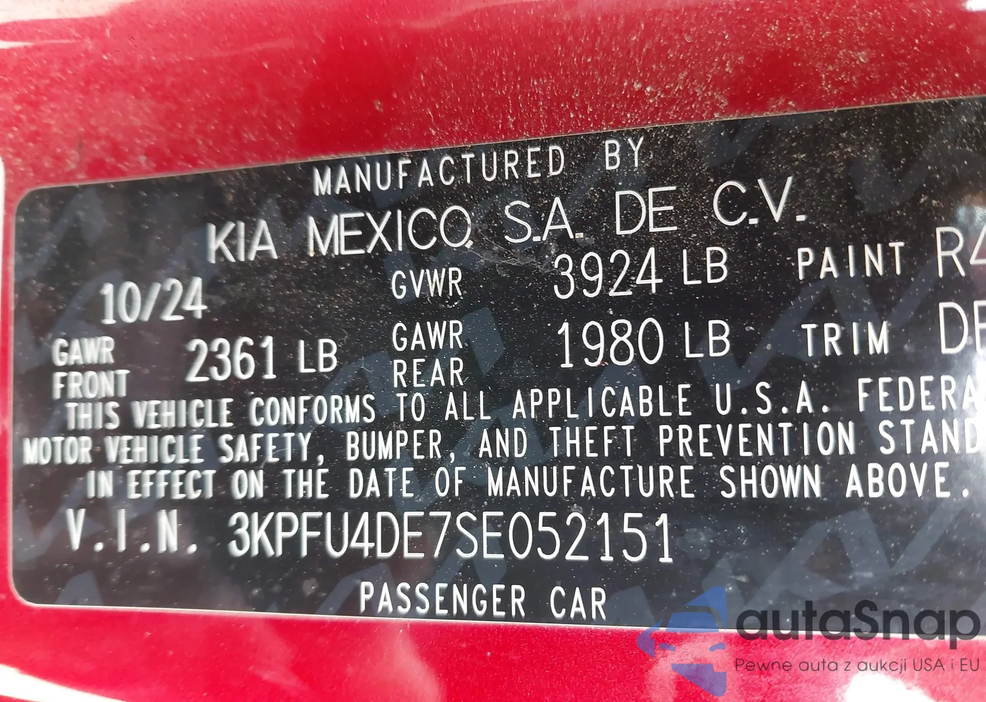 • VIN 3KPFT4DE2SE224119