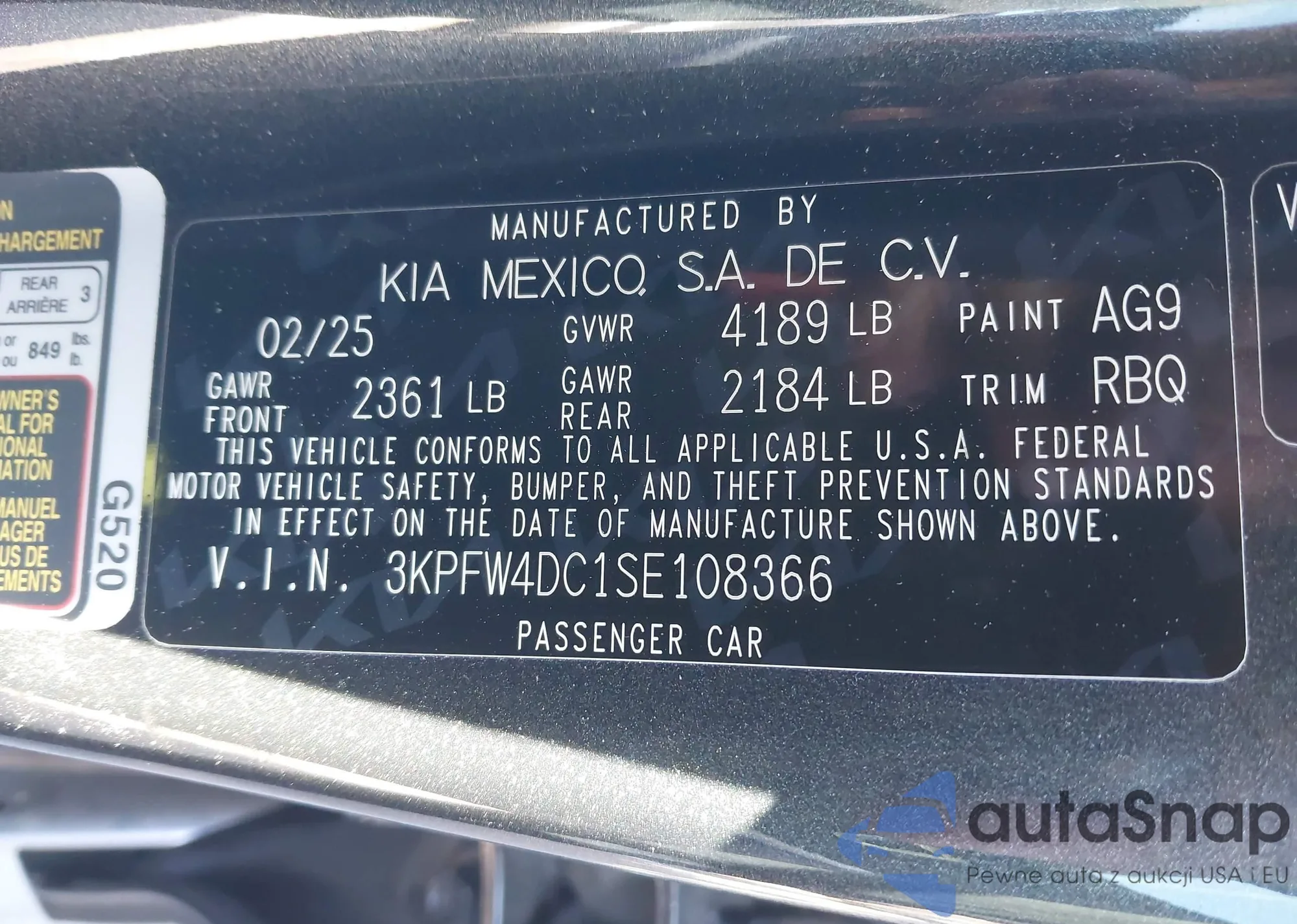 LOT: 44195021 VIN: 3KPFT4DE8SE005469