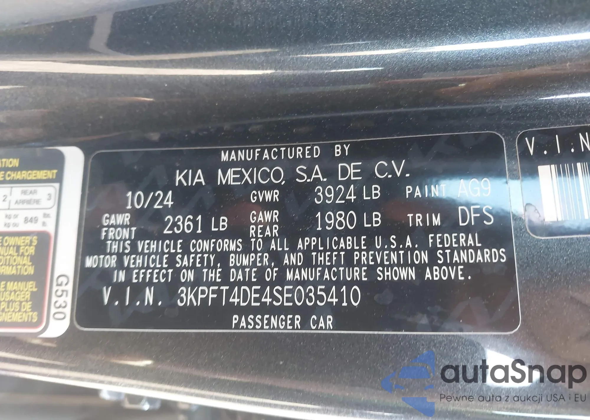 • VIN 3KPFT4DE4SE035410