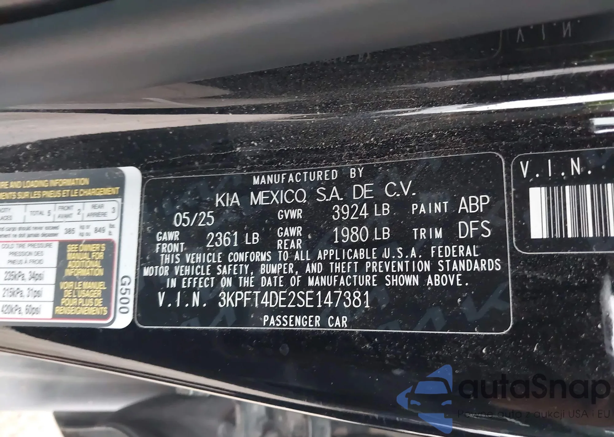 • VIN 3KPFT4DE2SE147381