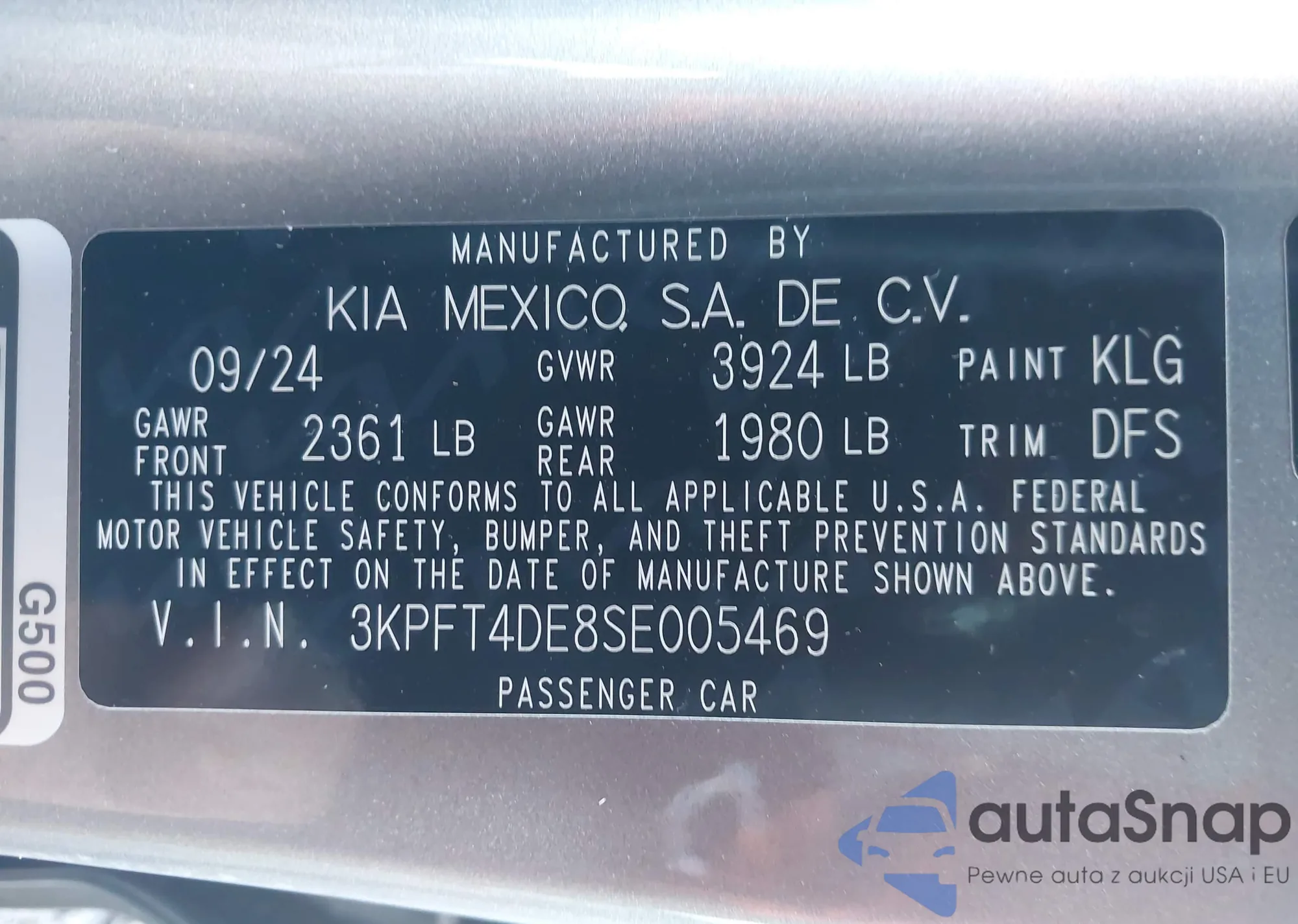 • VIN 3KPFT4DE8SE005469