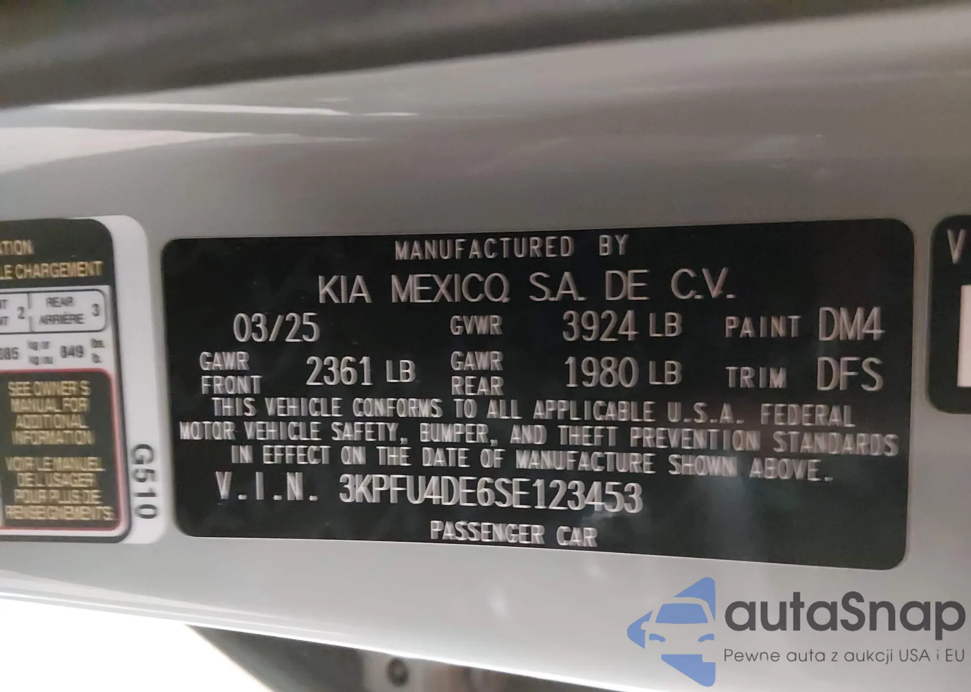 • VIN 3KPFU4DE6SE123453