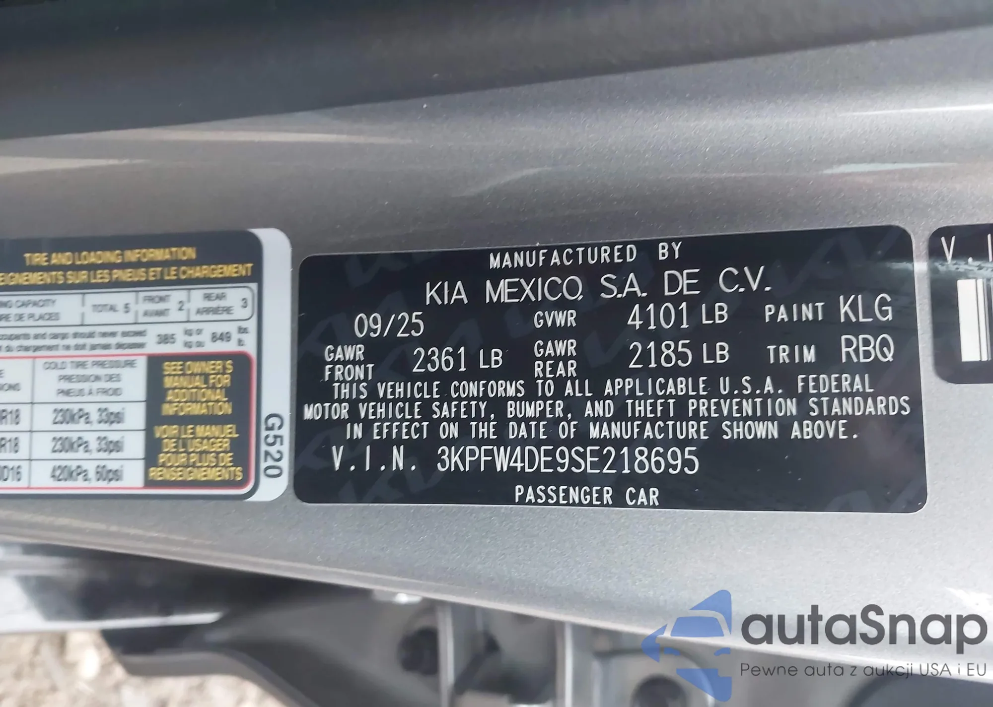 LOT: 44205315 VIN: 3KPFT4DE1SE015020