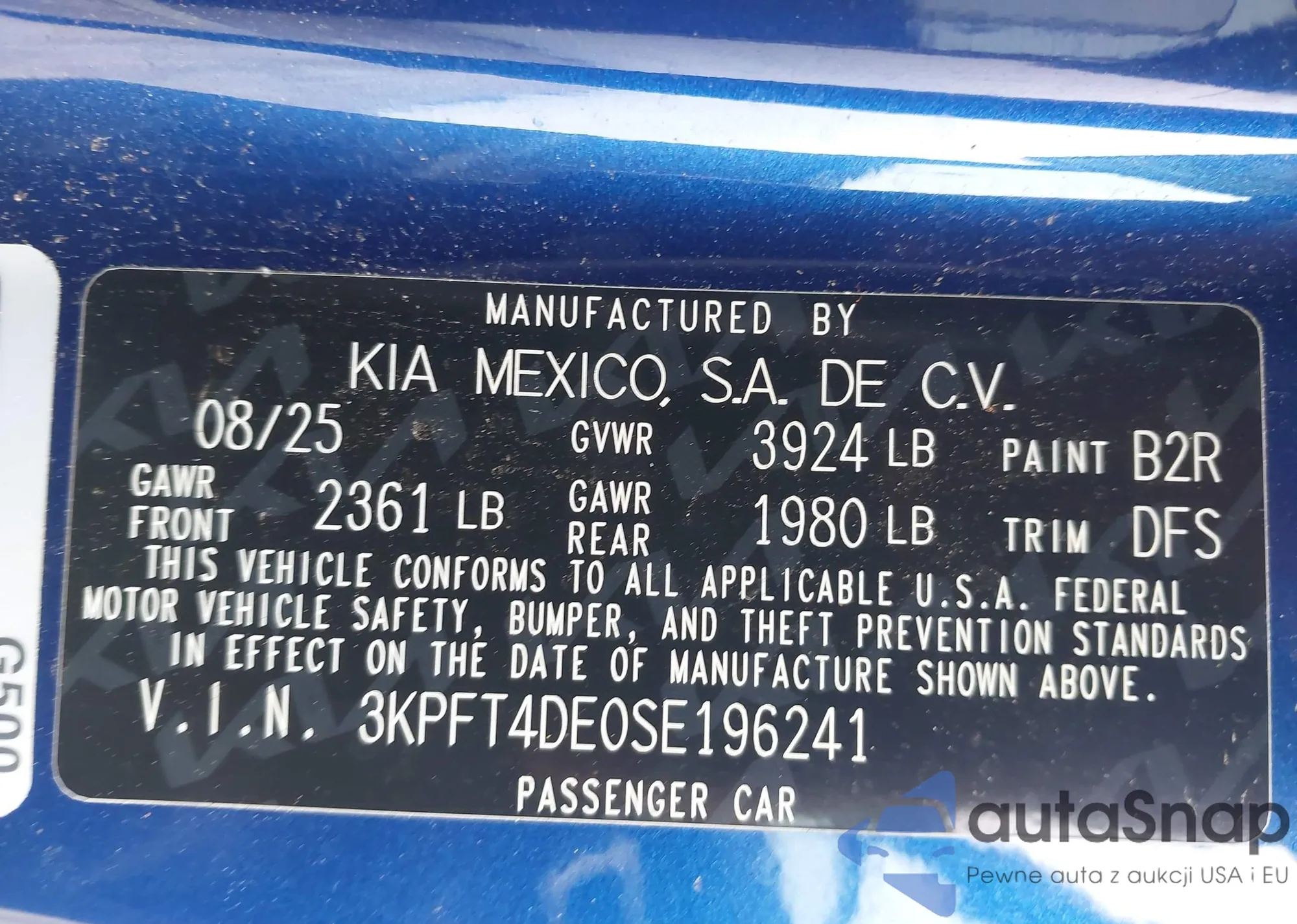 • VIN 3KPFT4DE0SE196241