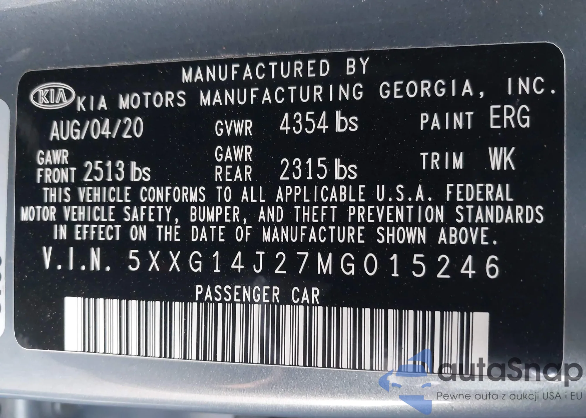 • VIN 5XXG14J27MG015246
