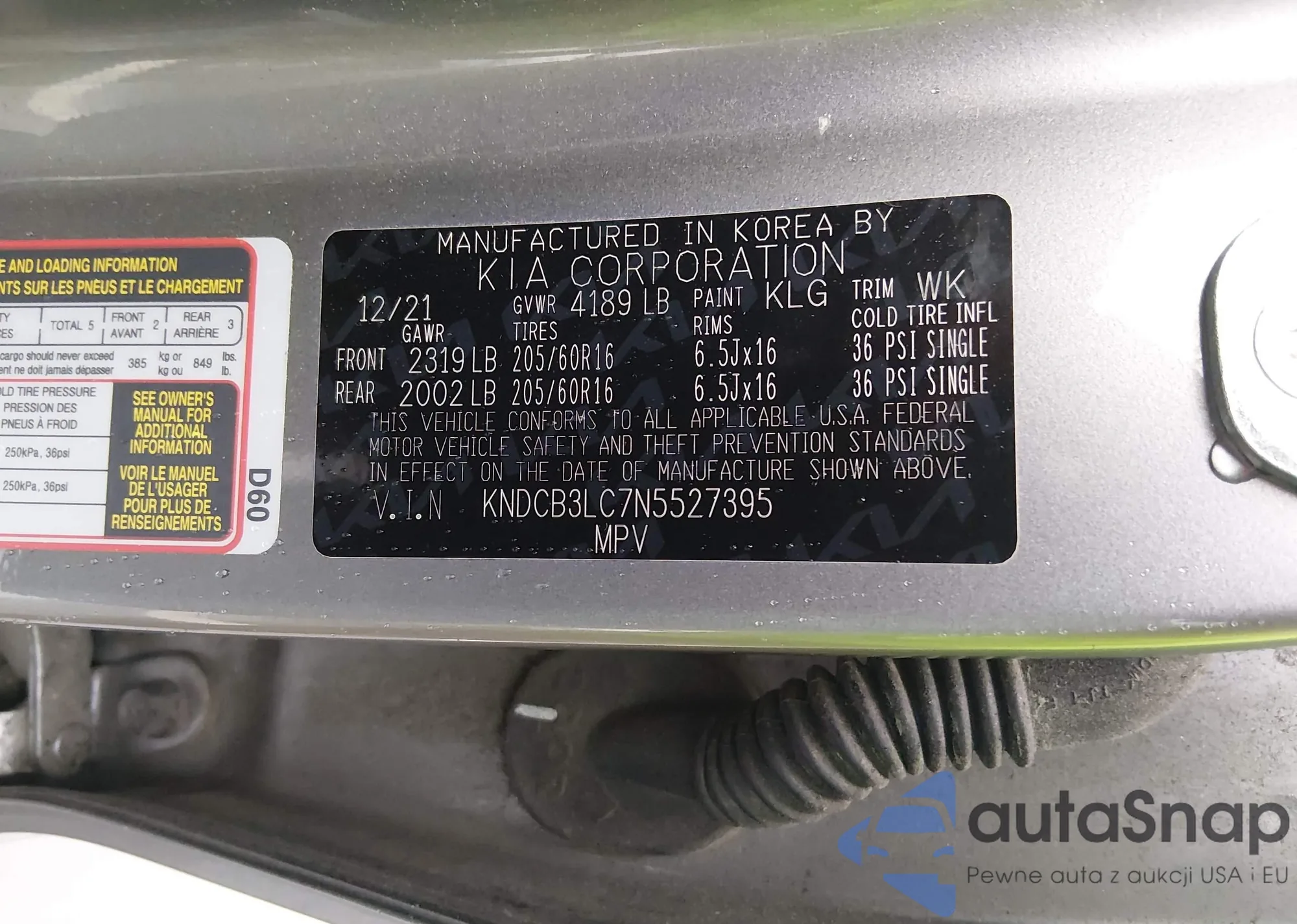 • VIN KNDCB3LC7N5527395