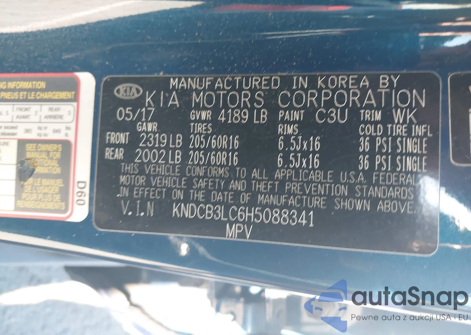 • VIN KNDCB3LC6H5088341