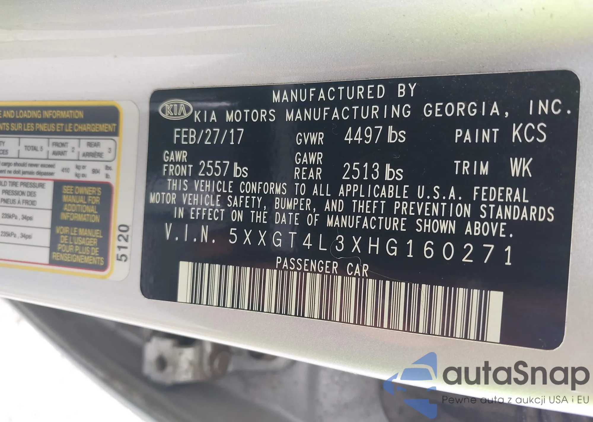 LOT: 74648105 VIN: KNAGV4LD4H5009818