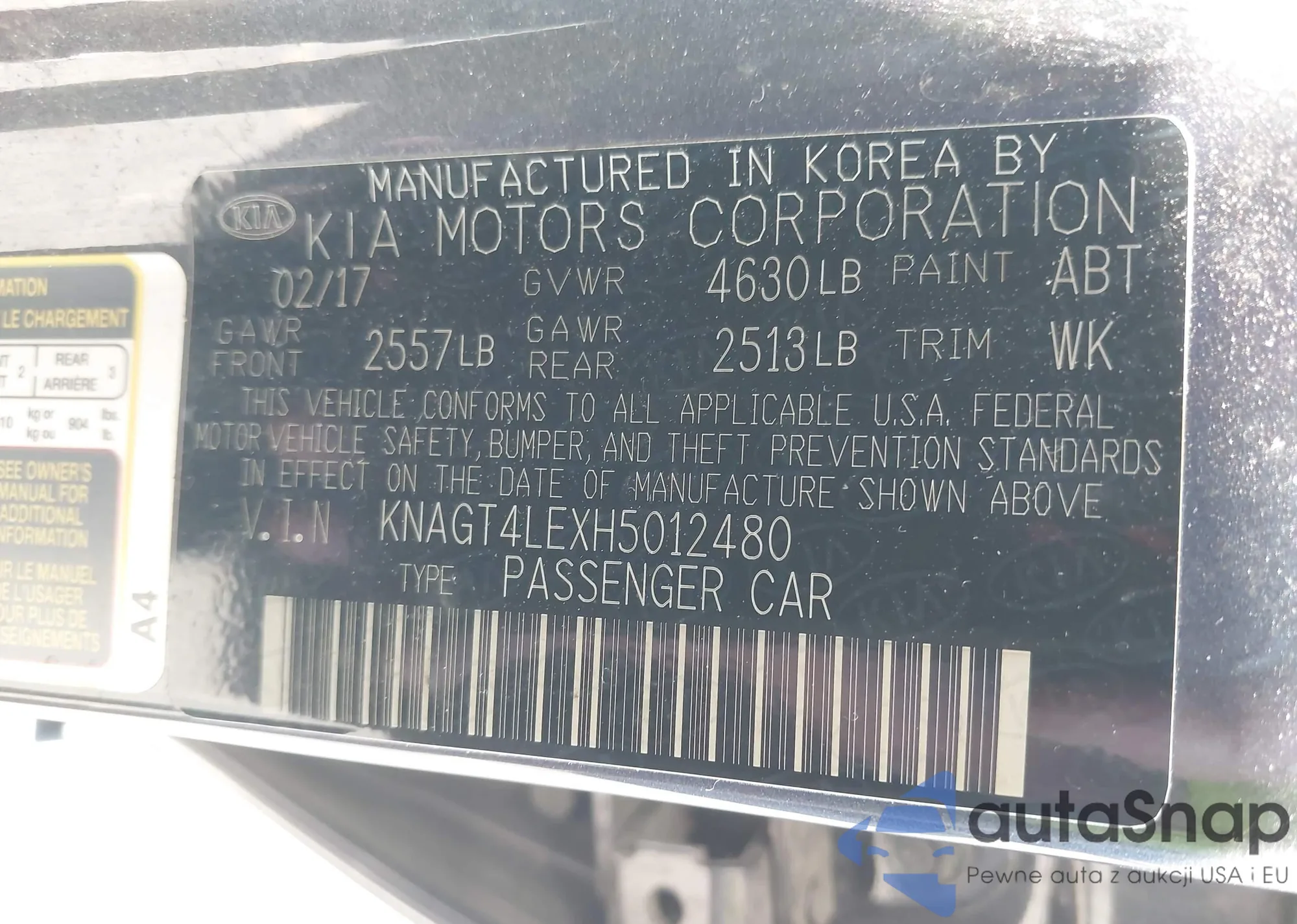 LOT: 42444298 VIN: KNAGT4LEXH5012480
