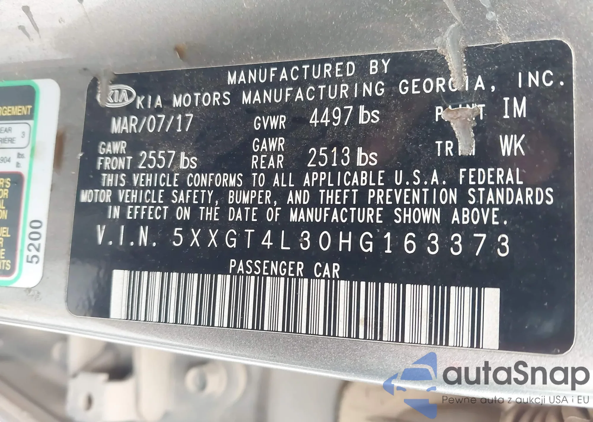 LOT: 43978508 VIN: 5XXGT4L30HG163373