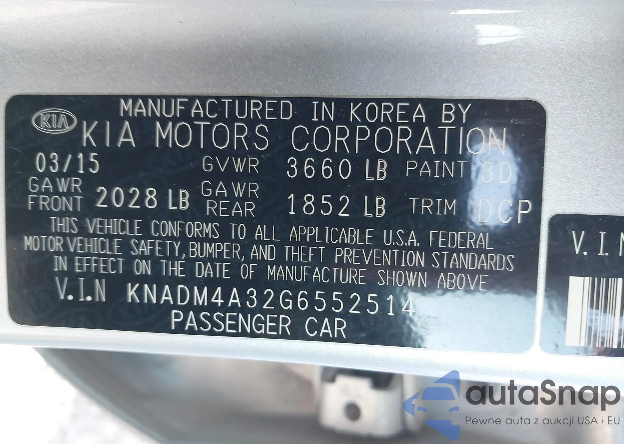 LOT: 43925605 VIN: KNADM4A32G6552514