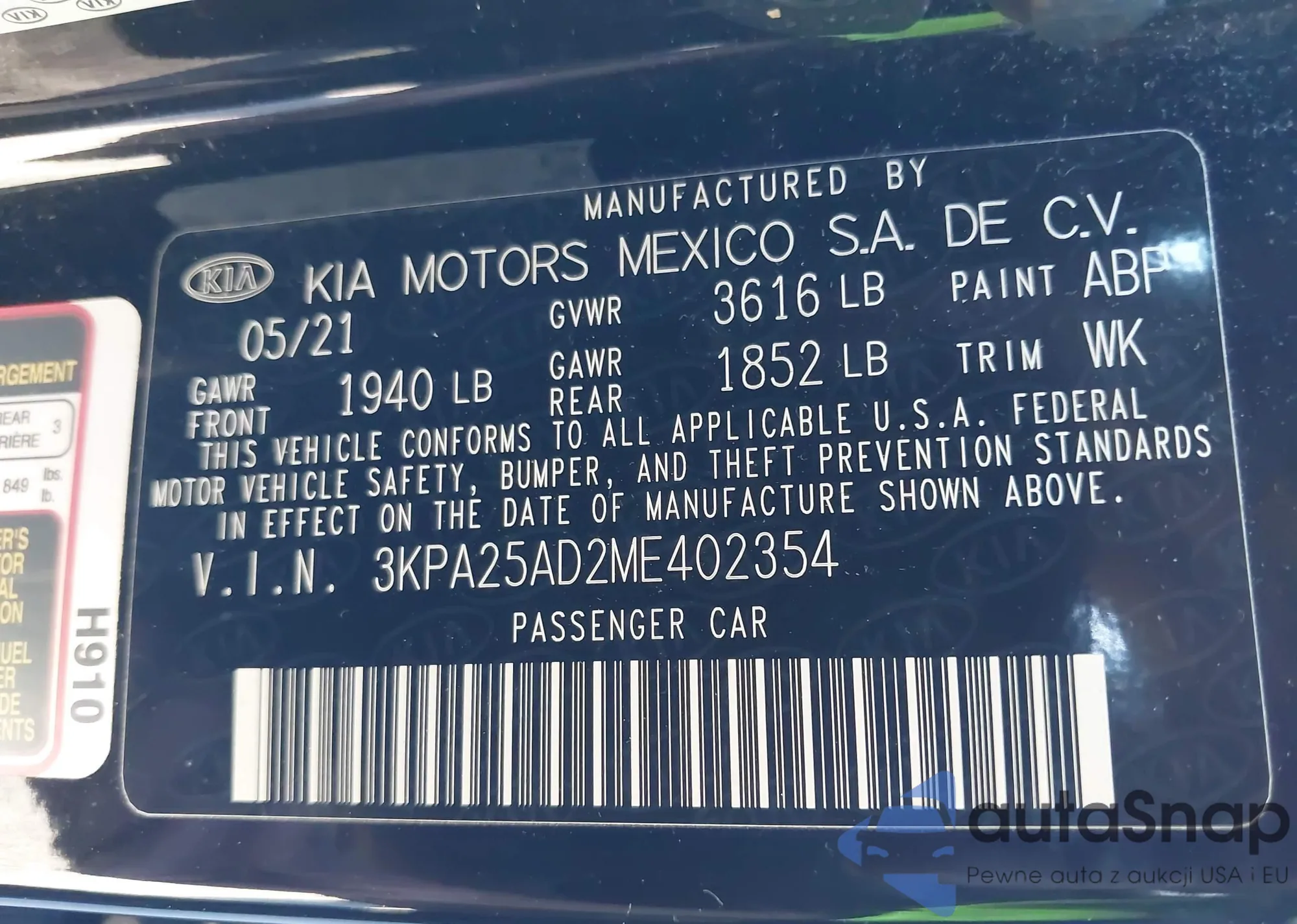 • VIN 3KPA25AD2ME402354