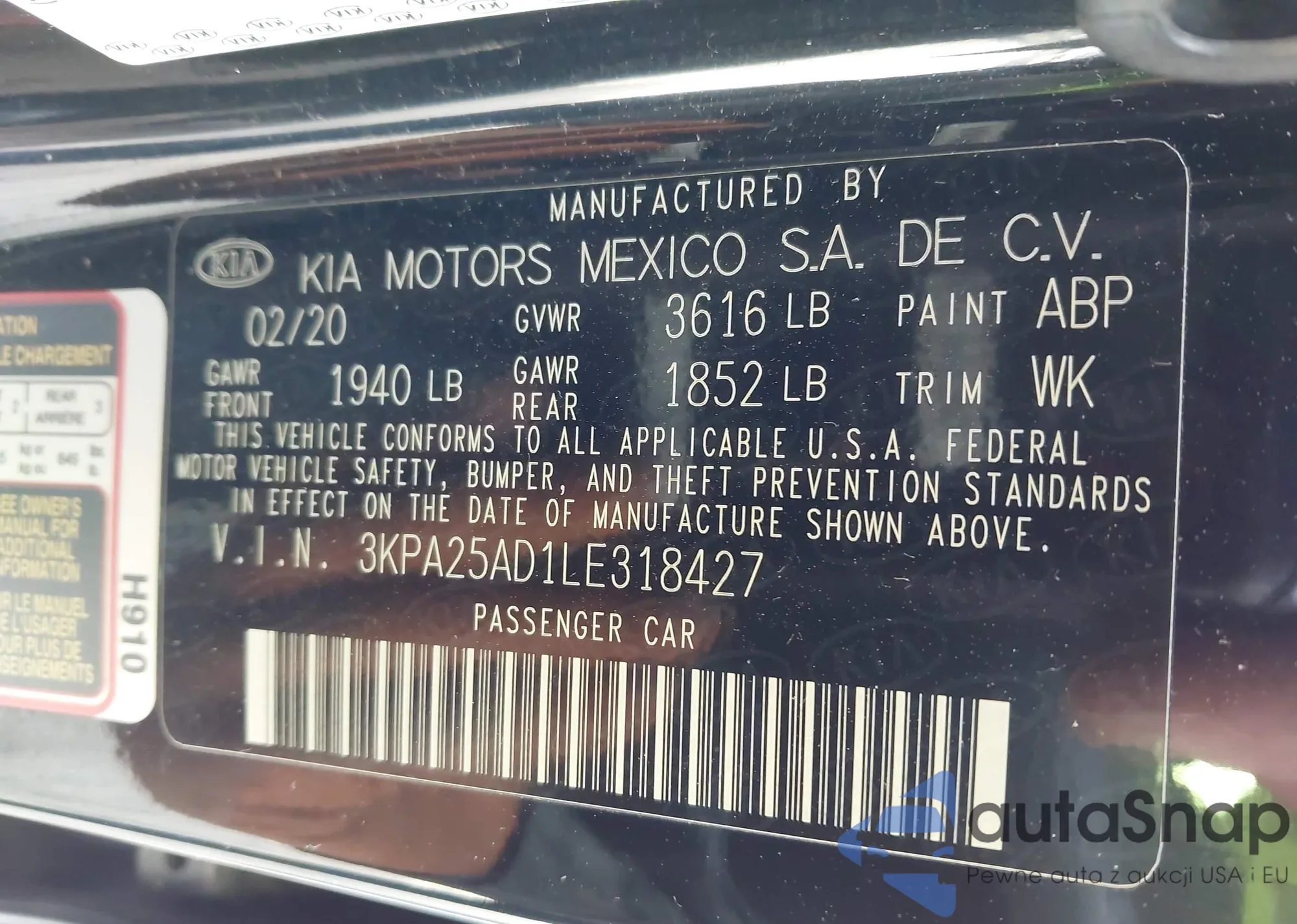 • VIN 3KPA25AD1LE318427