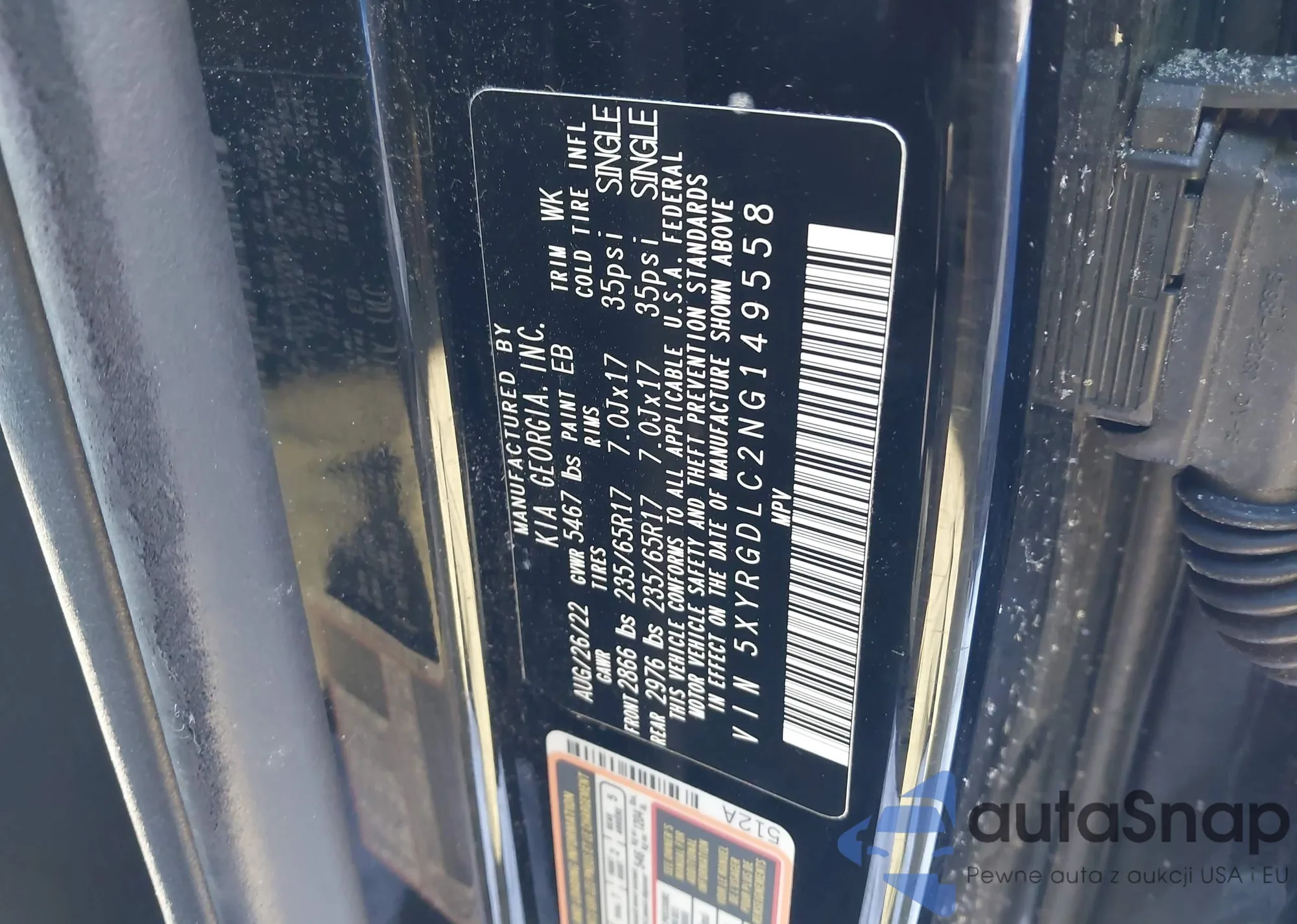 • VIN 5XYRGDLC2NG149558