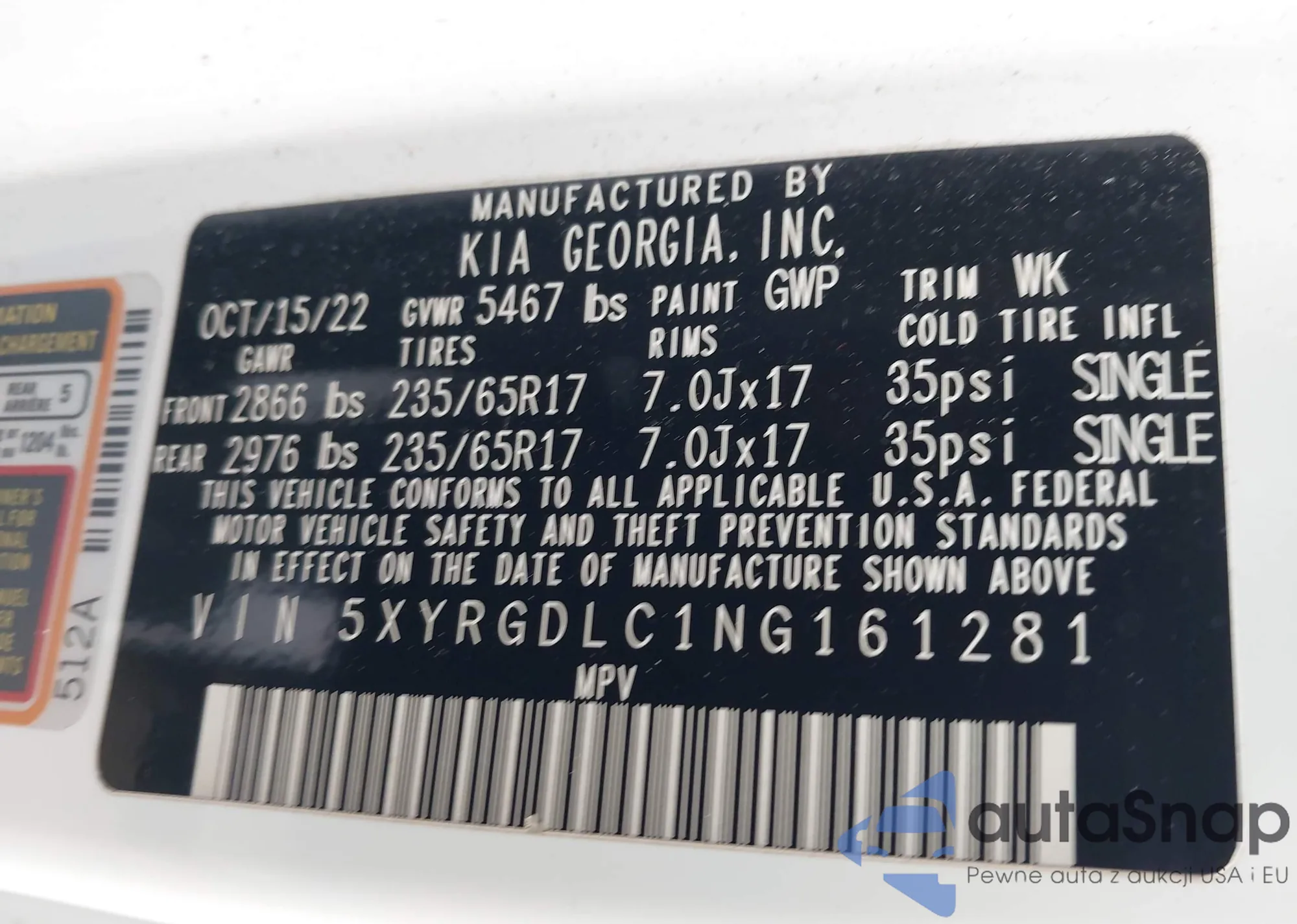 • VIN 5XYRG4LC6NG131502