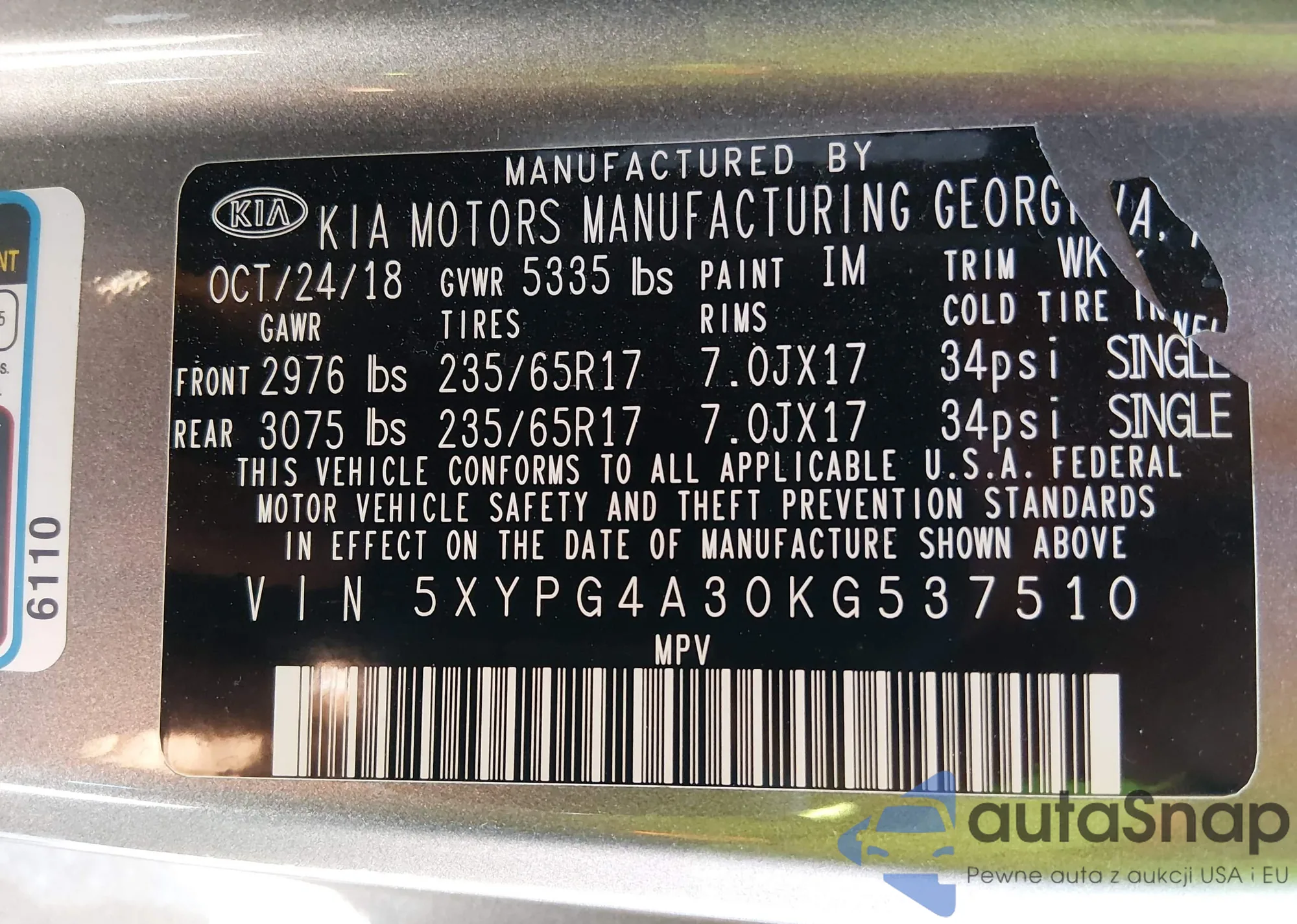 • VIN 5XYPG4A30KG537510