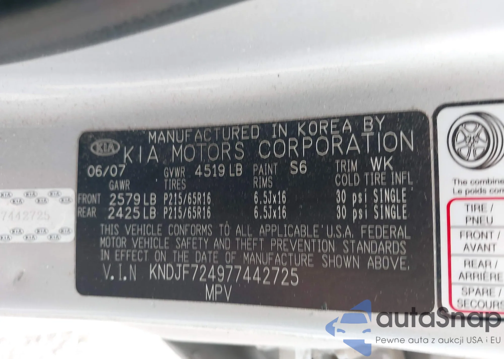 LOT: 43691371 VIN: KNDJF724477415707