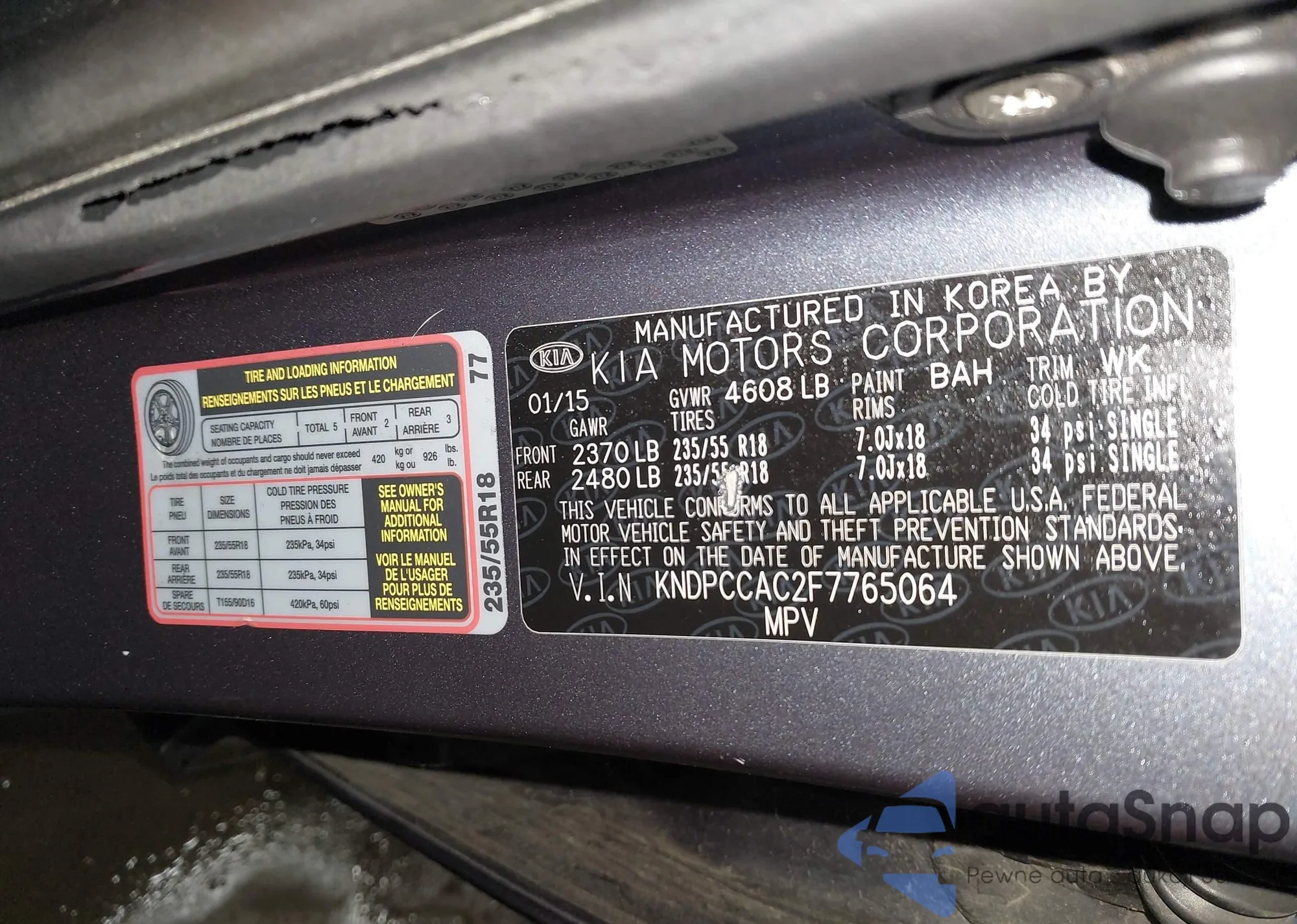 • VIN KNDPBCAC5F7781469