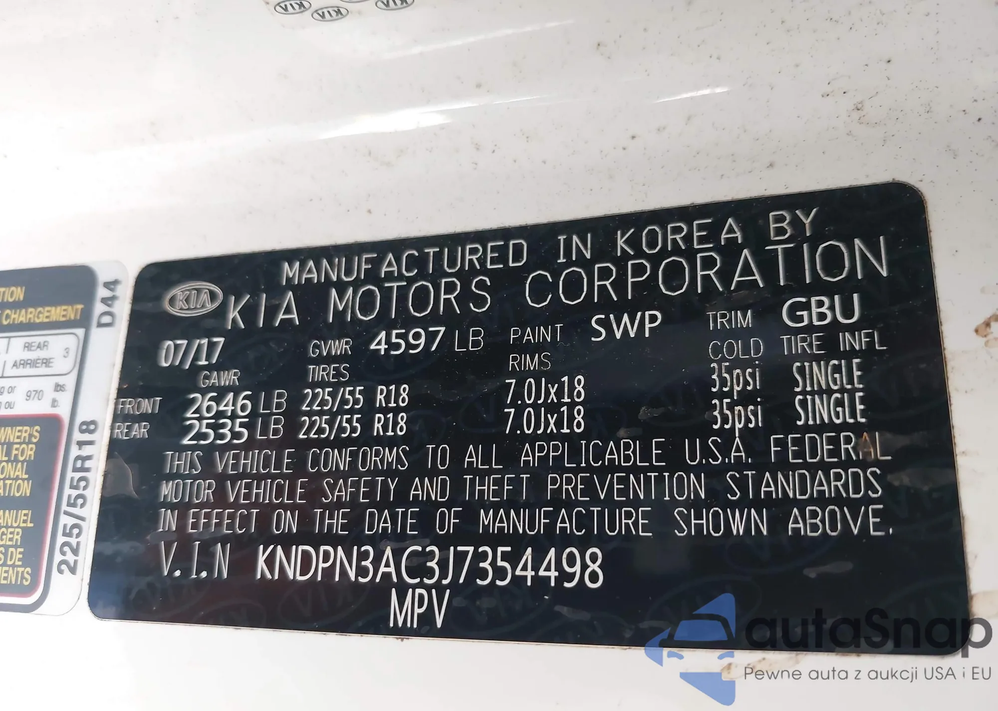 • VIN KNDPN3AC3J7354498