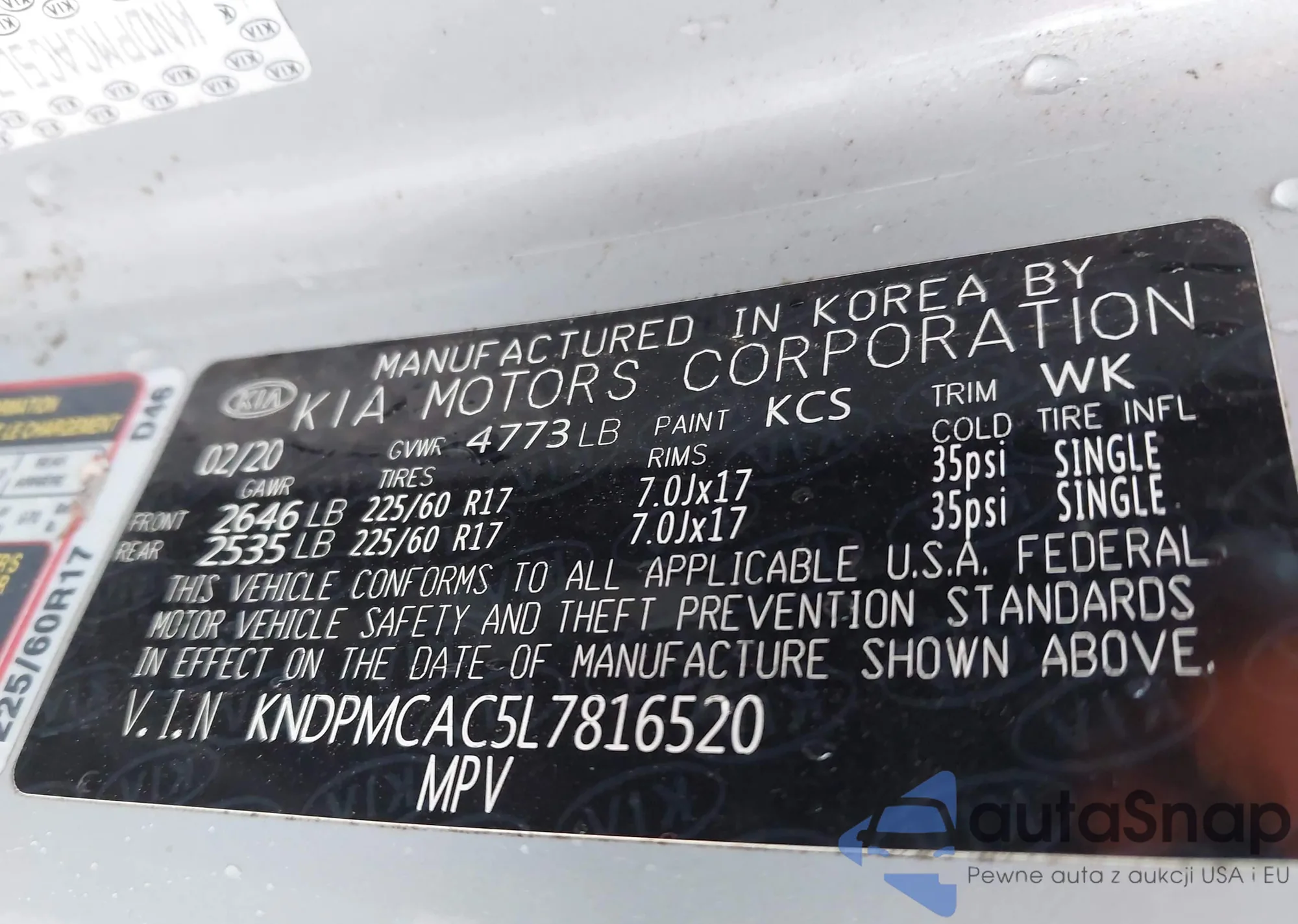 • VIN KNDPMCAC5L7816520