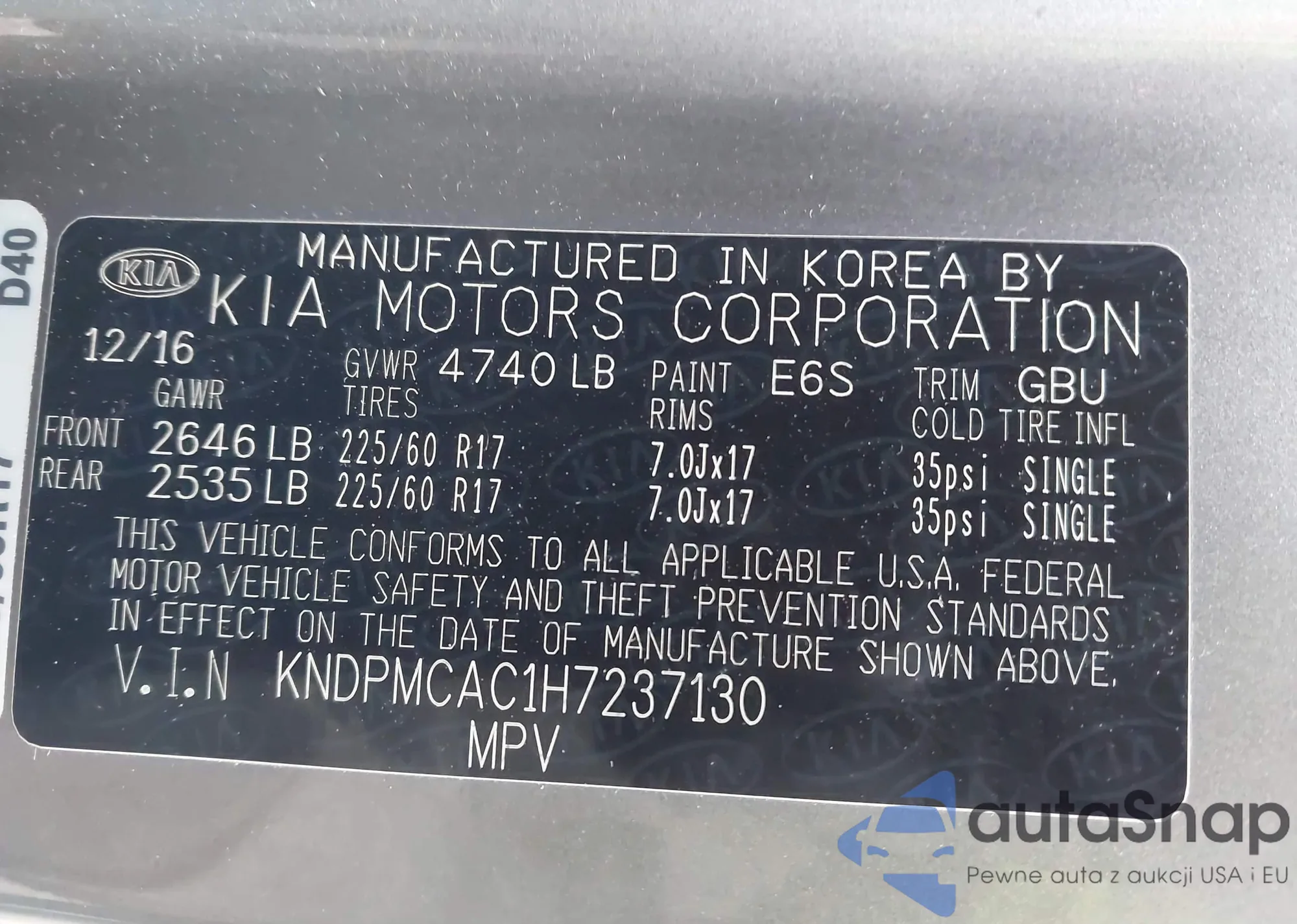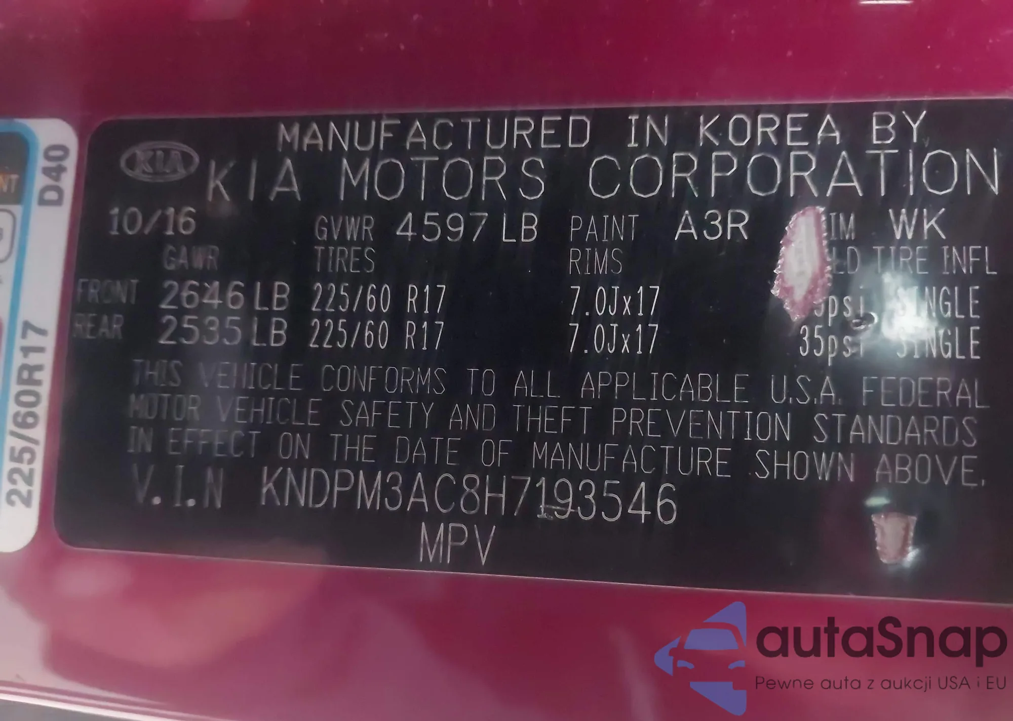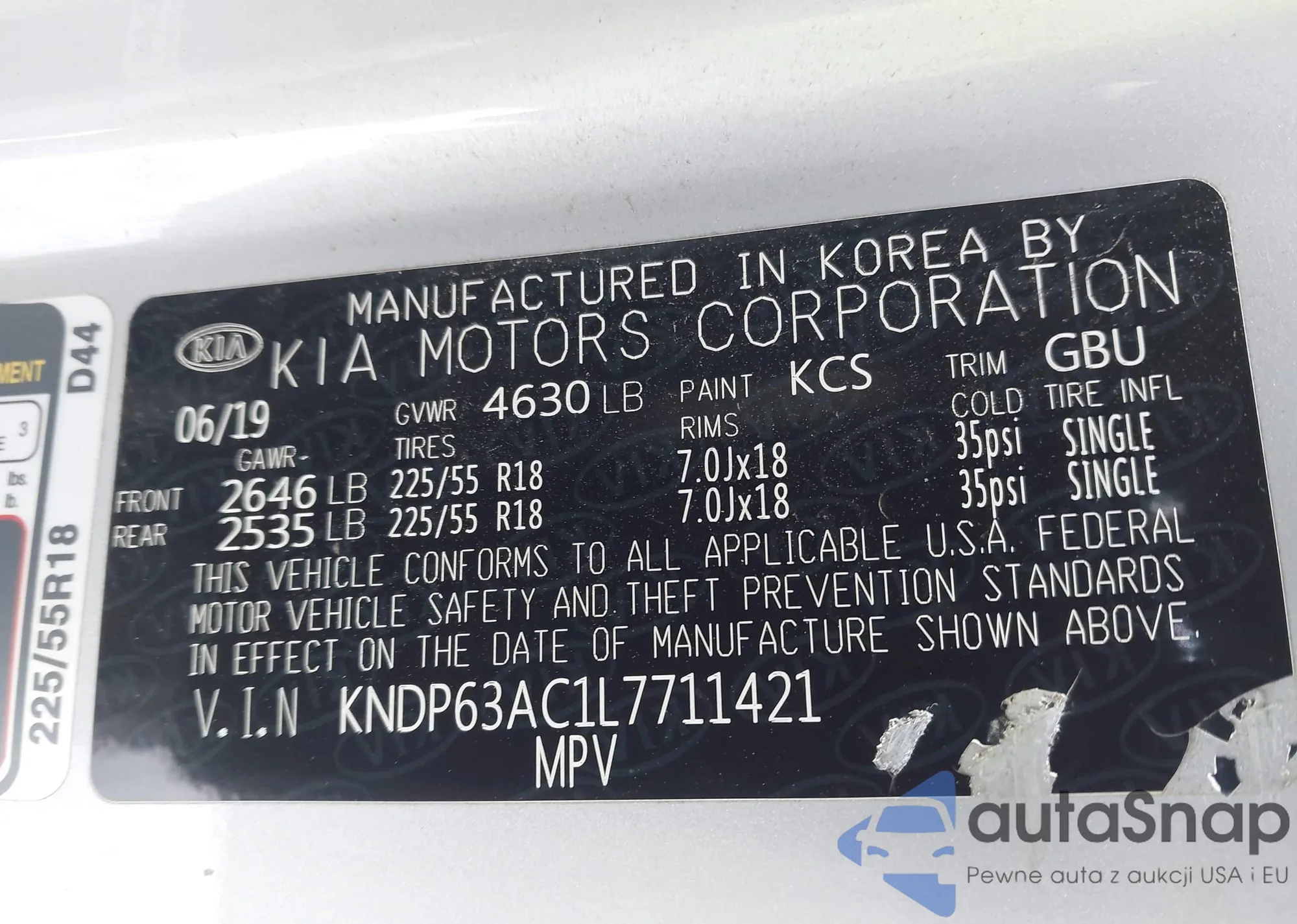 • VIN KNDP6CAC7L7715425