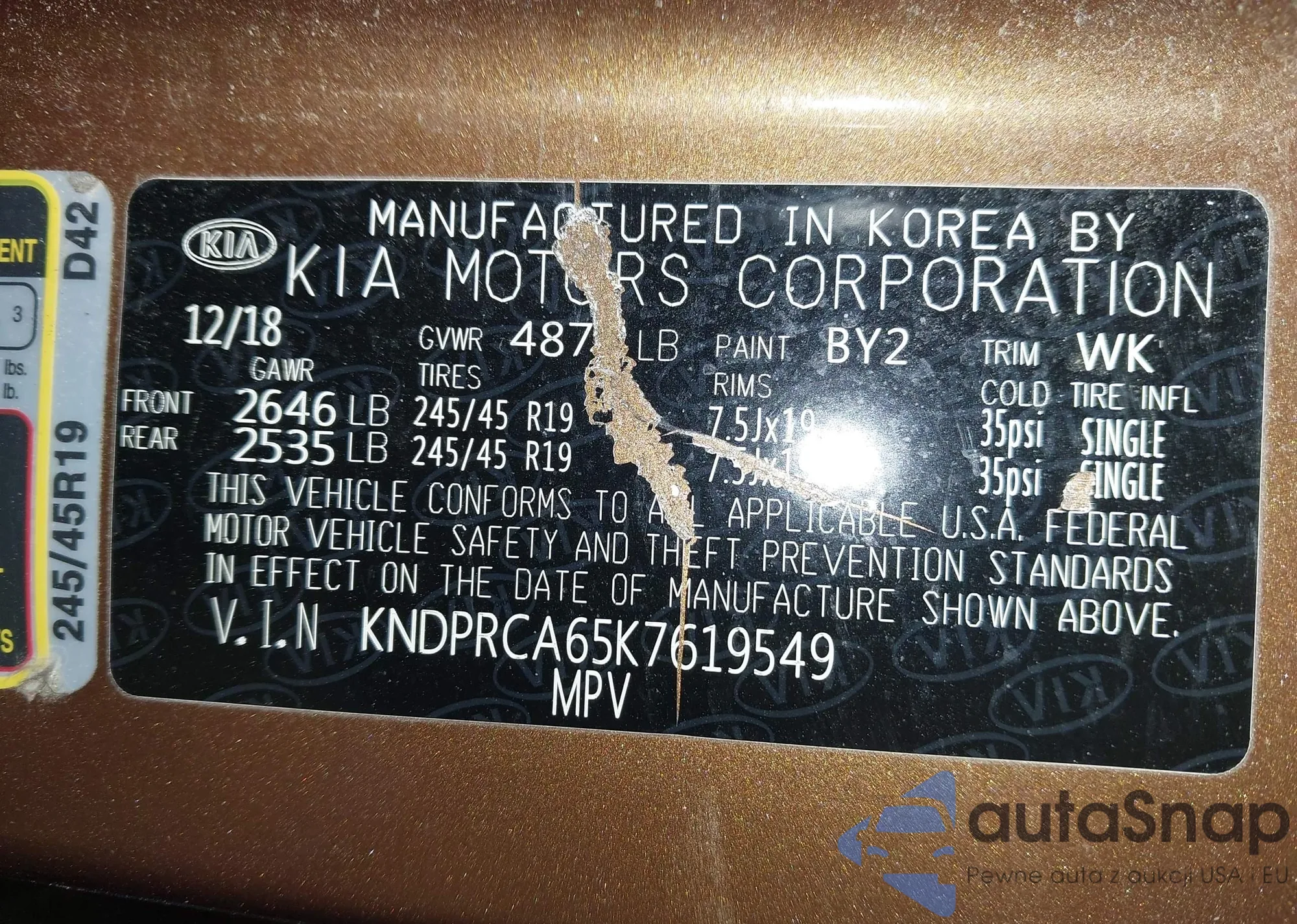 • VIN KNDPRCA65K7619549