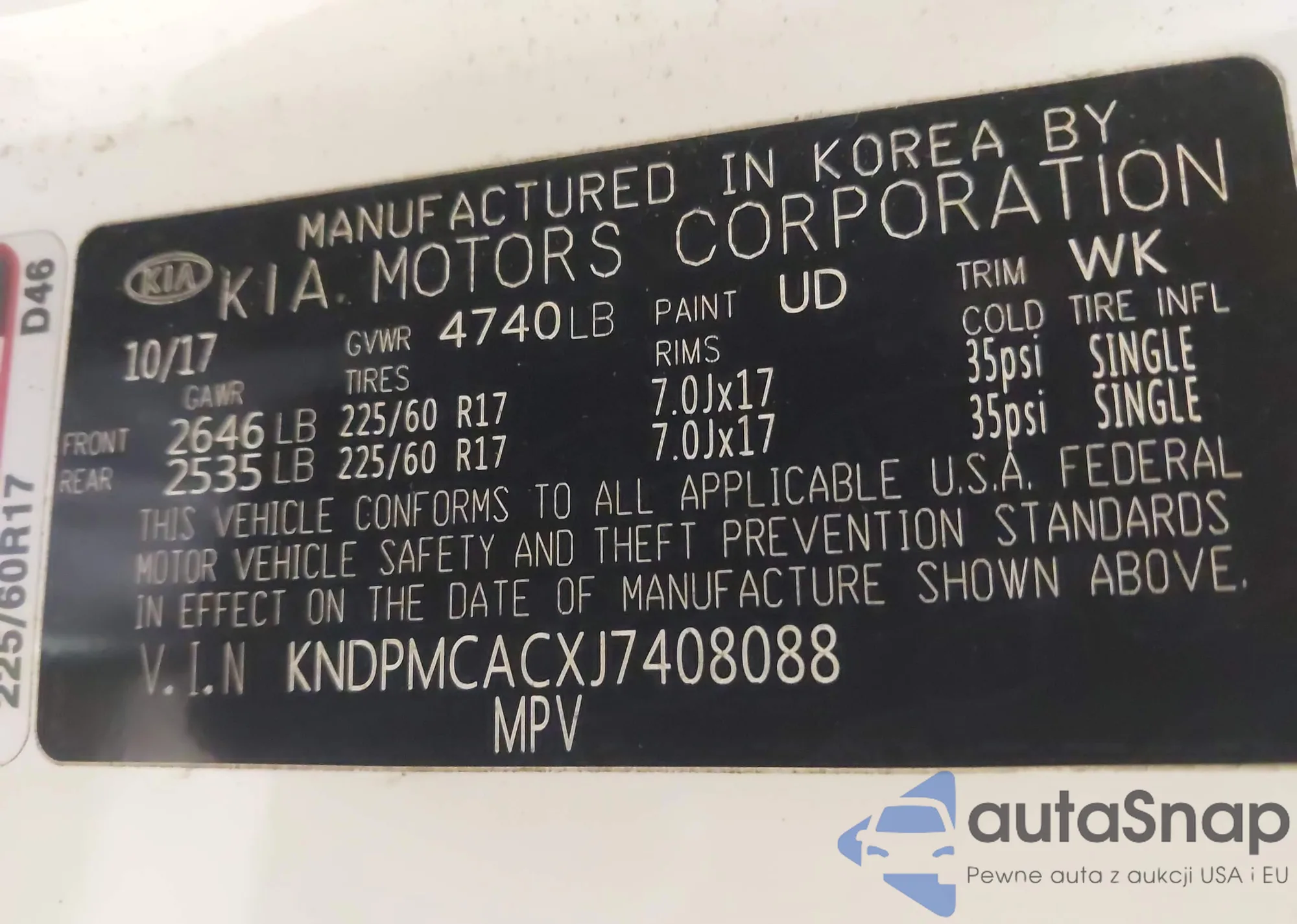 • VIN KNDPMCAC4J7347630