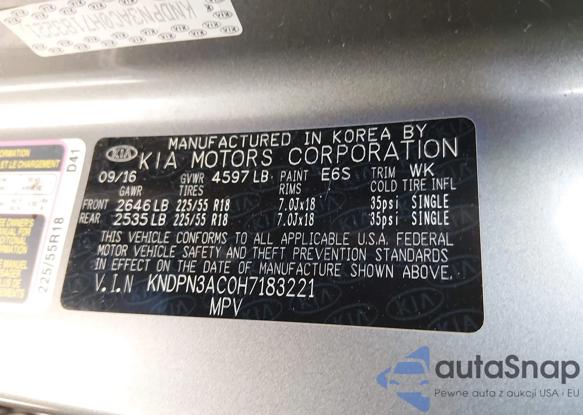 • VIN KNDPN3AC0H7183221