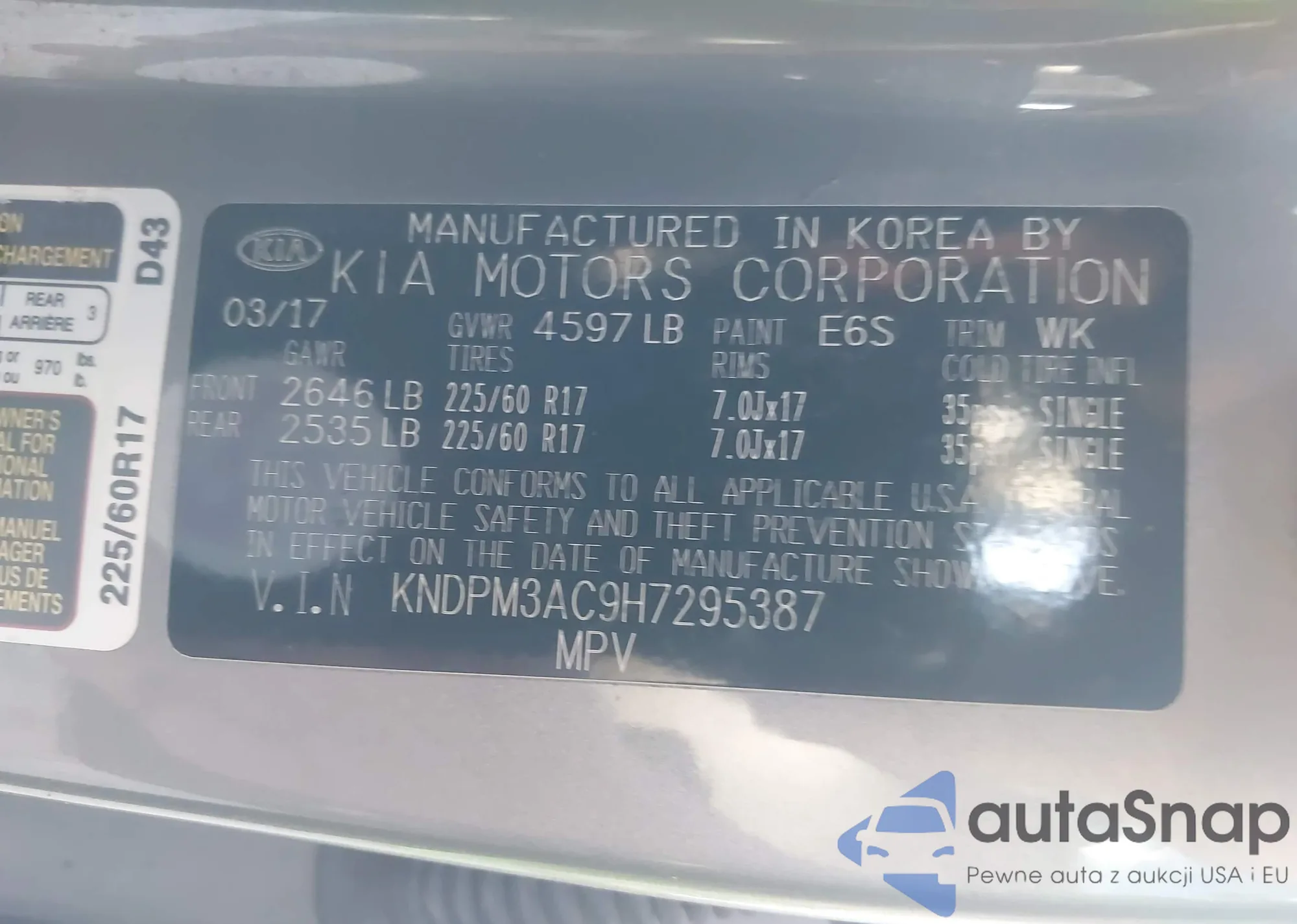 LOT: 44140432 VIN: KNDPM3AC9H7295387