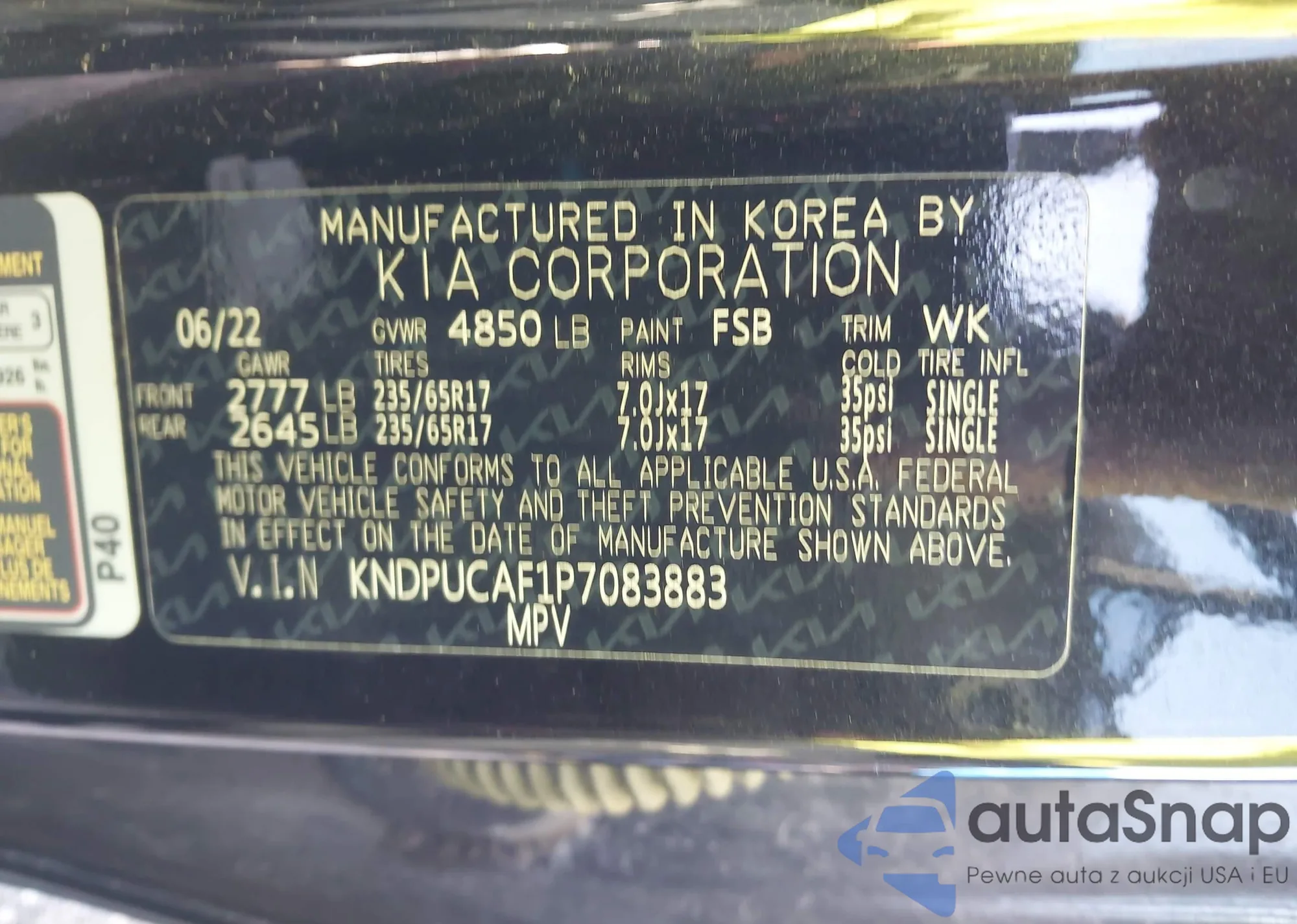 • VIN KNDPUCAF1P7083883