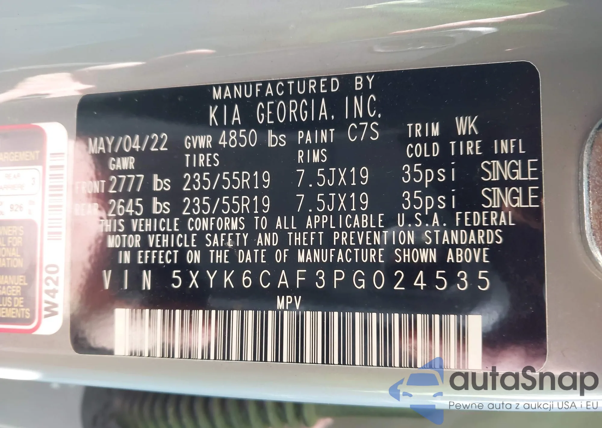 • VIN 5XYK6CAF3PG024535