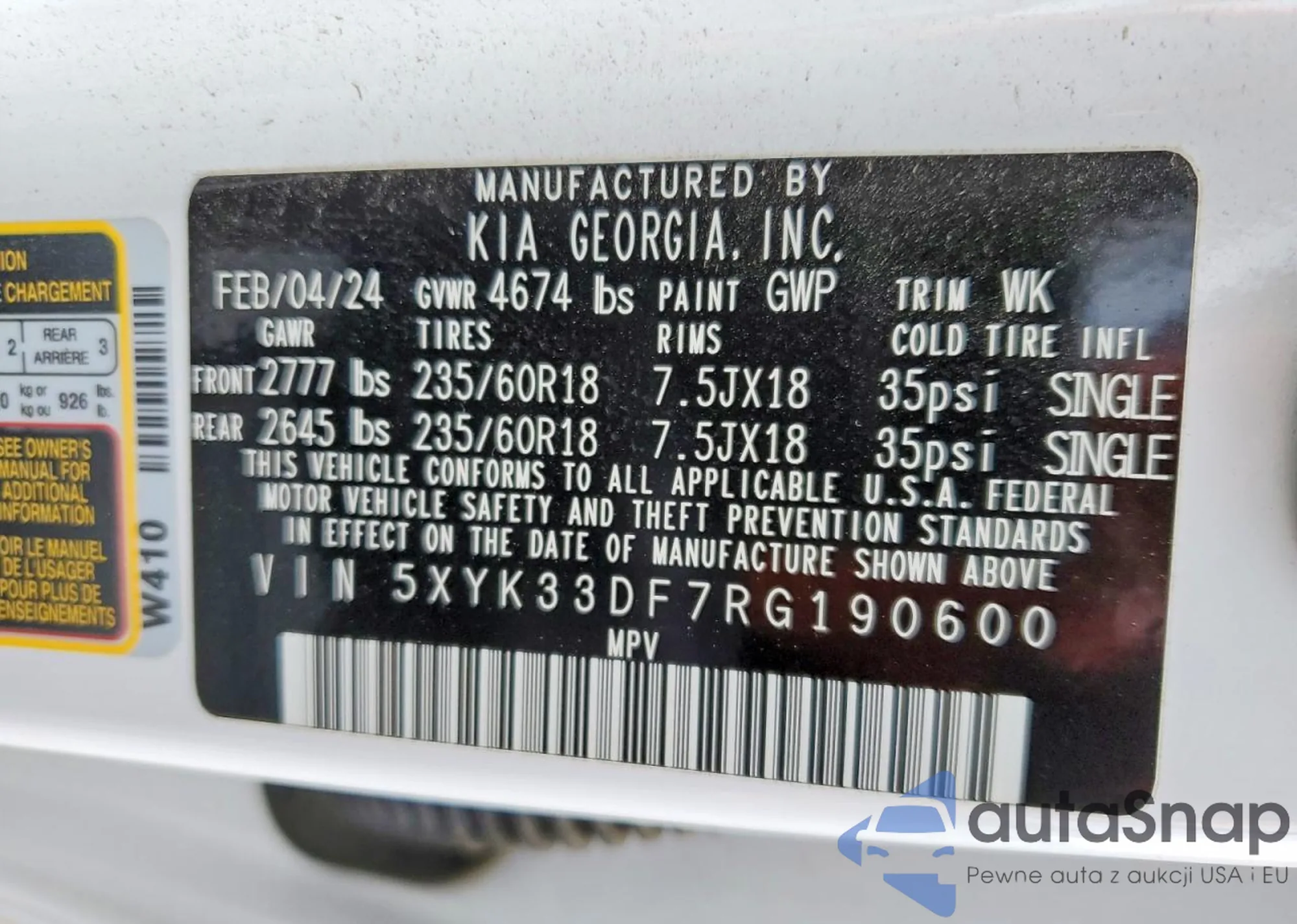 • VIN 5XYK33DF7RG190600